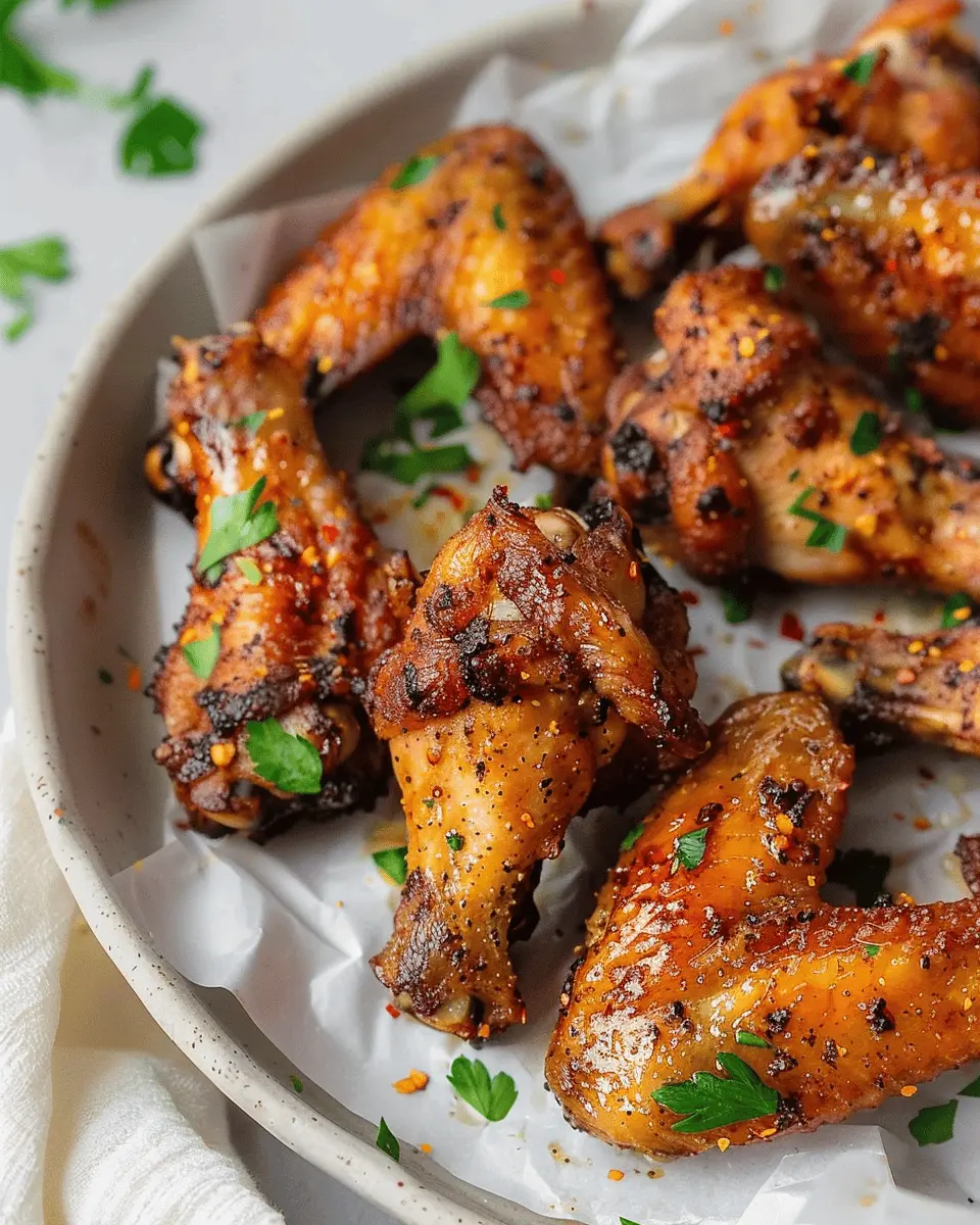 • Use baking powder: Toss your wings in a little baking powder mixed with seasoning. This helps create that golden, crispy skin.