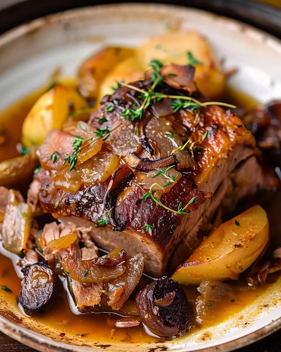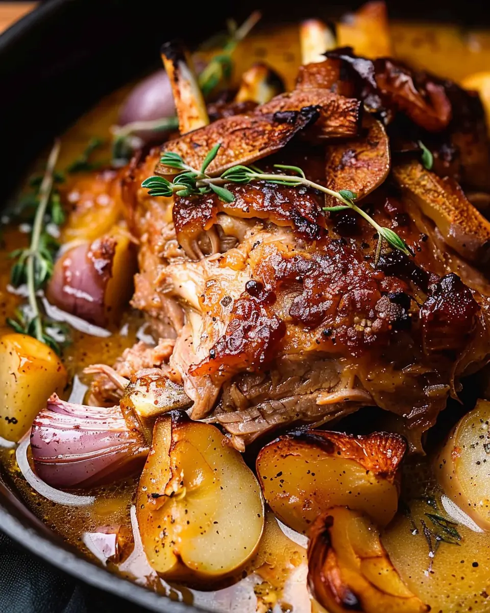 Enjoy the rich flavors of Apple Cider Braised Pork Shoulder, a comforting dish perfect for any occasion.