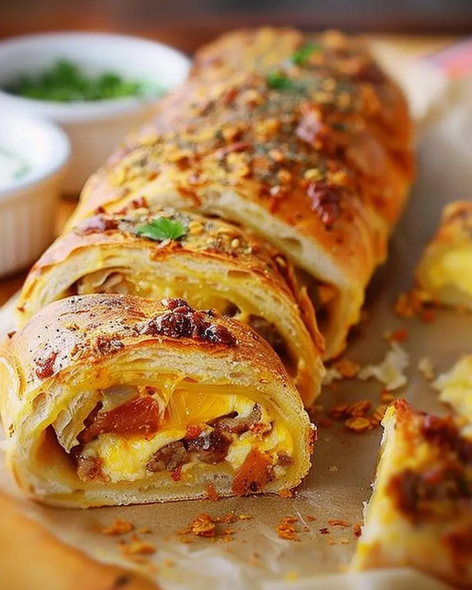 Breakfast Stromboli: Indulgent Twist with Turkey Bacon and Chicken Ham