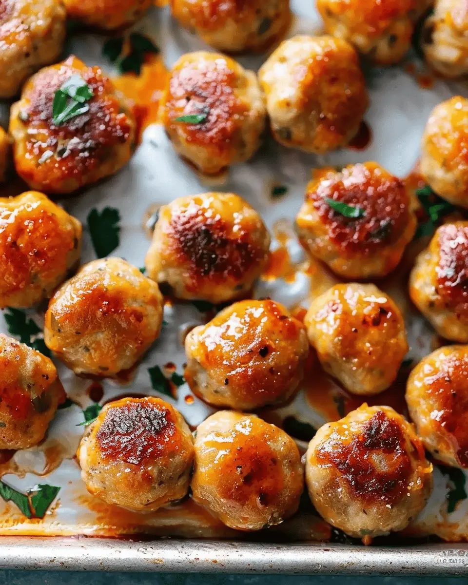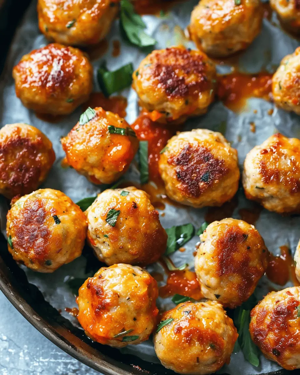 As the savory aroma fills your kitchen, think about how you’ll serve these baked chicken meatballs. They’re perfect with pasta, in salads, or even as a bite-sized appetizer! When they’re ready, take them out and let them rest for a few minutes before plating. This gives the juices a bit of time to redistribute, ensuring every bite is juicy and delicious.