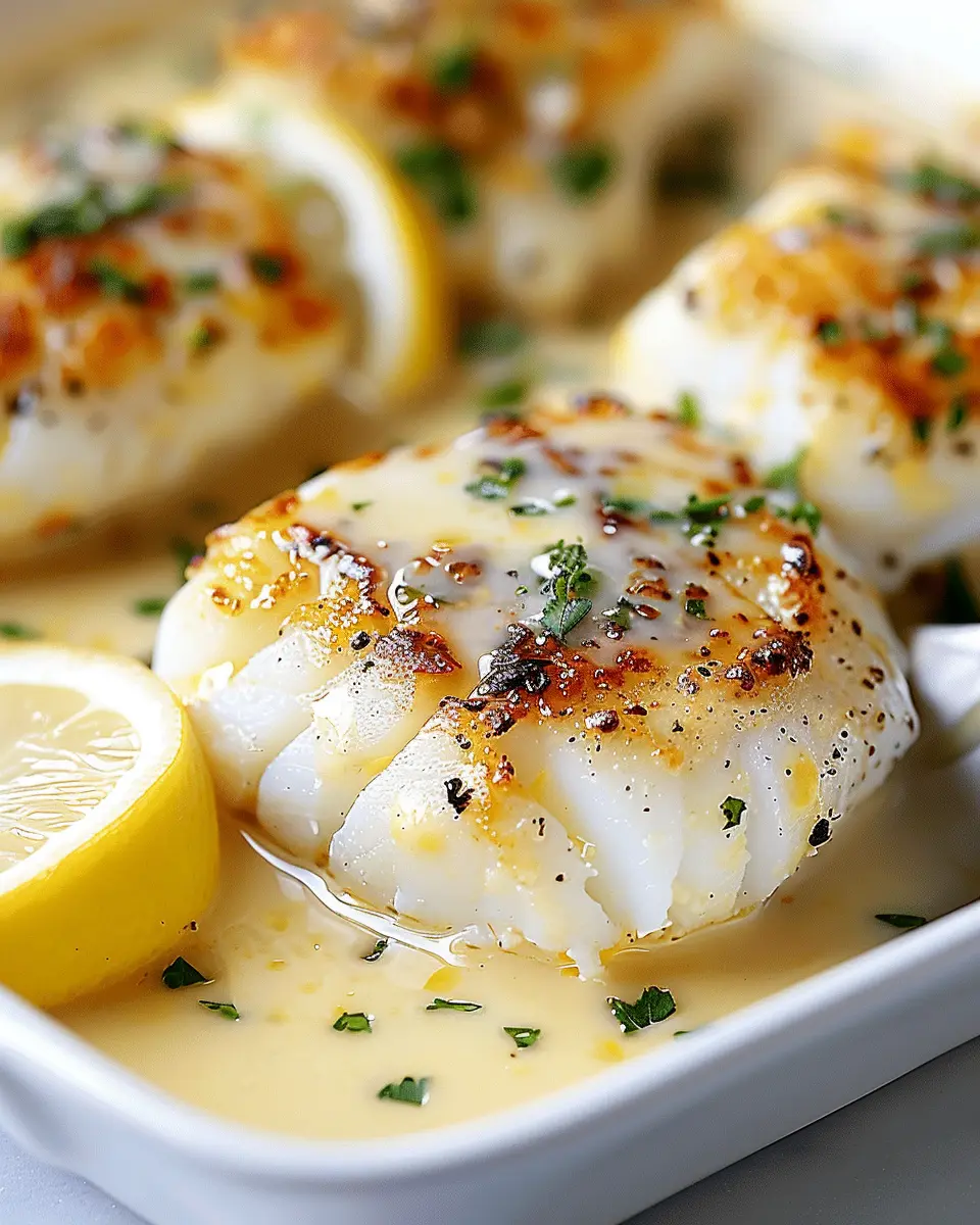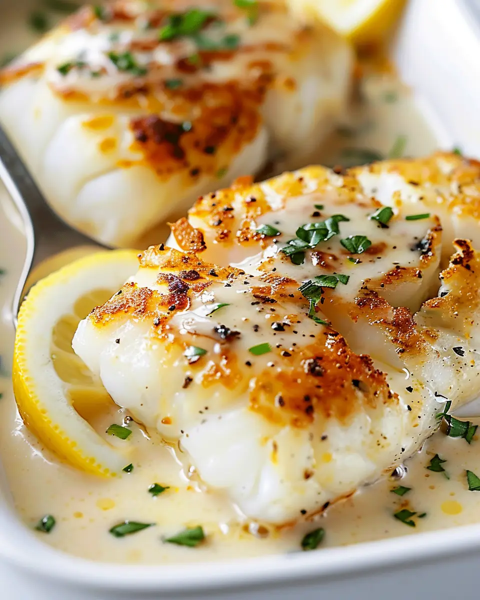 PrintBaked Cod in Coconut Lemon Cream Sauce: A Delicious Twist