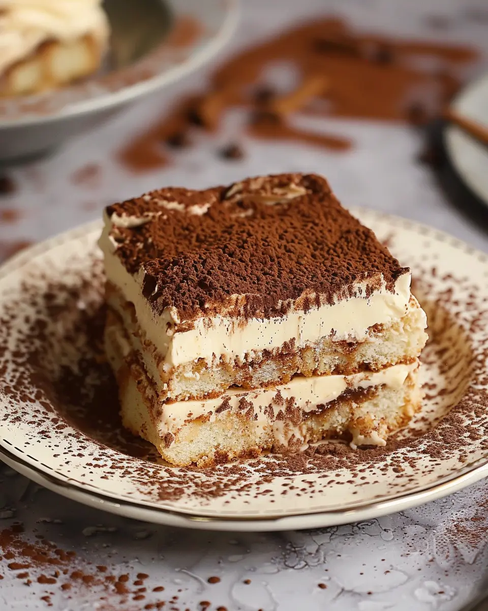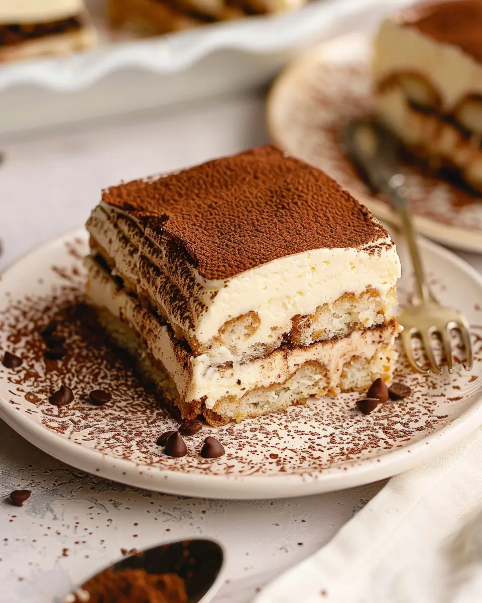 Once assembled, pop the tiramisu into the fridge for at least 4 hours, though overnight is best. This helps the flavors meld together beautifully. When you’re ready to serve, dust with cocoa powder on top for that classic finish.
