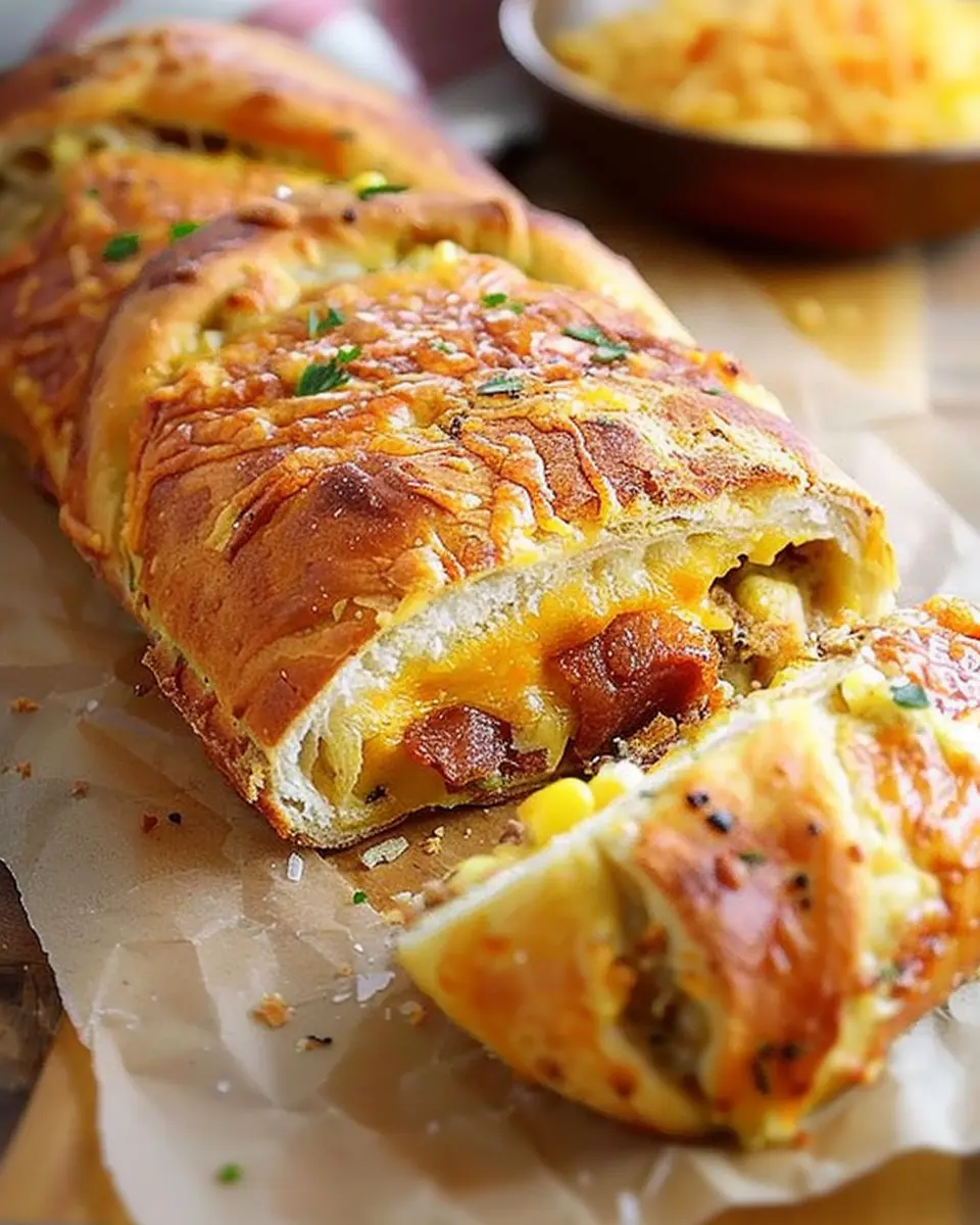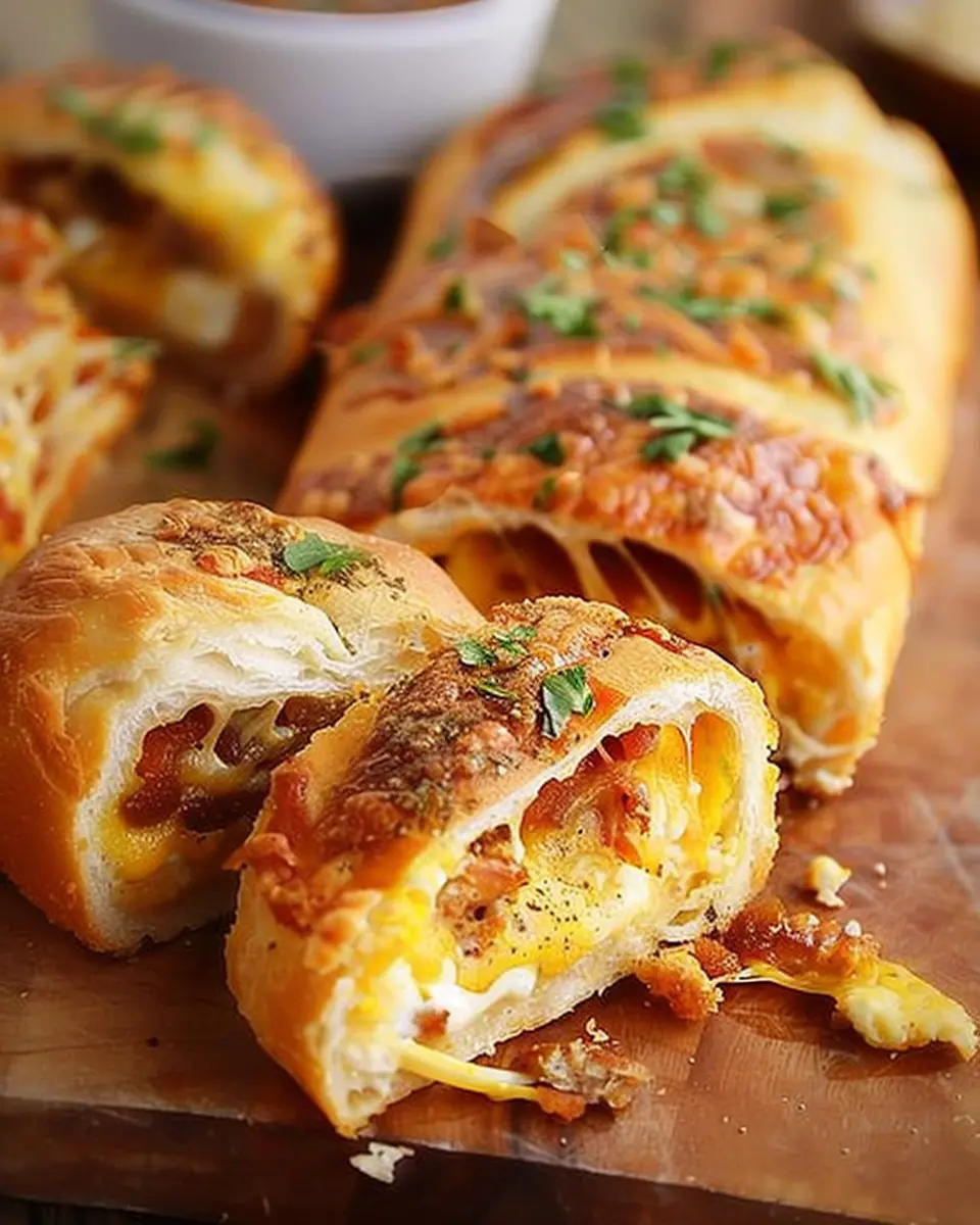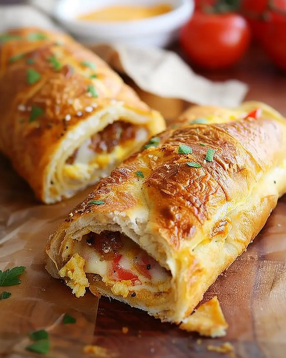 PrintBreakfast Stromboli: Indulgent Twist with Turkey Bacon and Chicken Ham