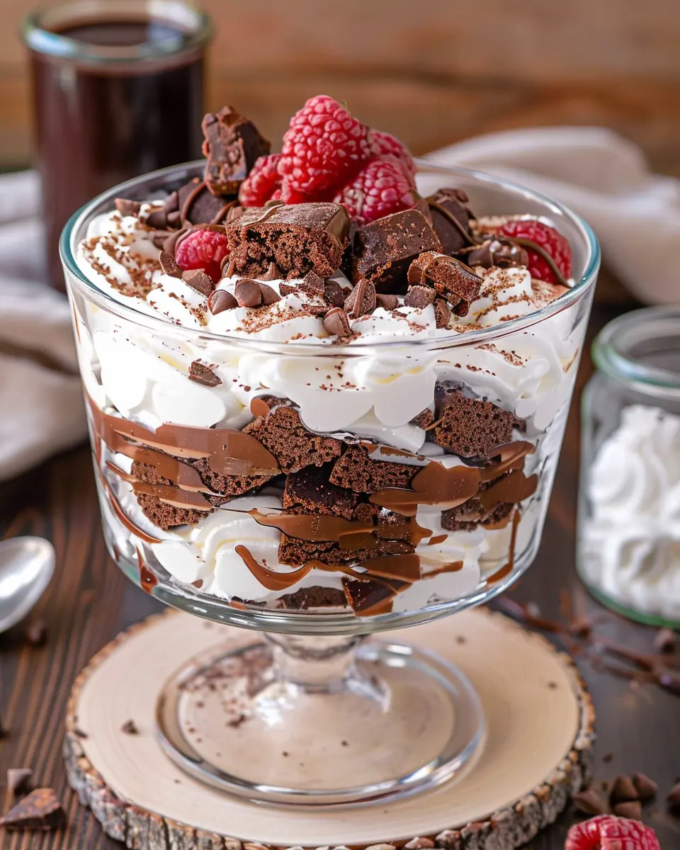 To make your brownie trifle even more enjoyable, consider pairing it with some chocolate shavings or a scoop of vanilla bean ice cream on top for that extra creamy goodness. A dollop of whipped cream adds a light, airy touch that beautifully complements the dense brownies. If you’re searching for a refreshing drink to go alongside, non-alcoholic sparkling water with a hint of lemon or a berry-infused herbal tea can balance out the richness.