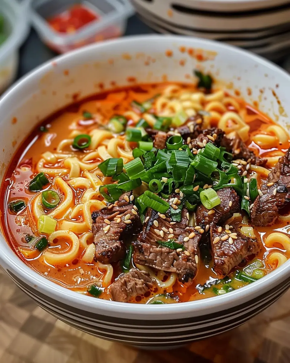 Spicy Korean Ramen with Grilled Beef & Creamy Sauce: A Cozy Delight