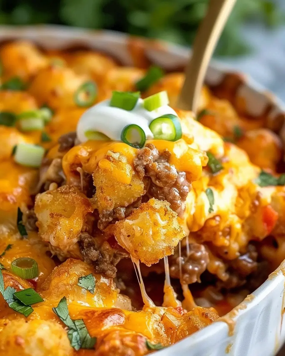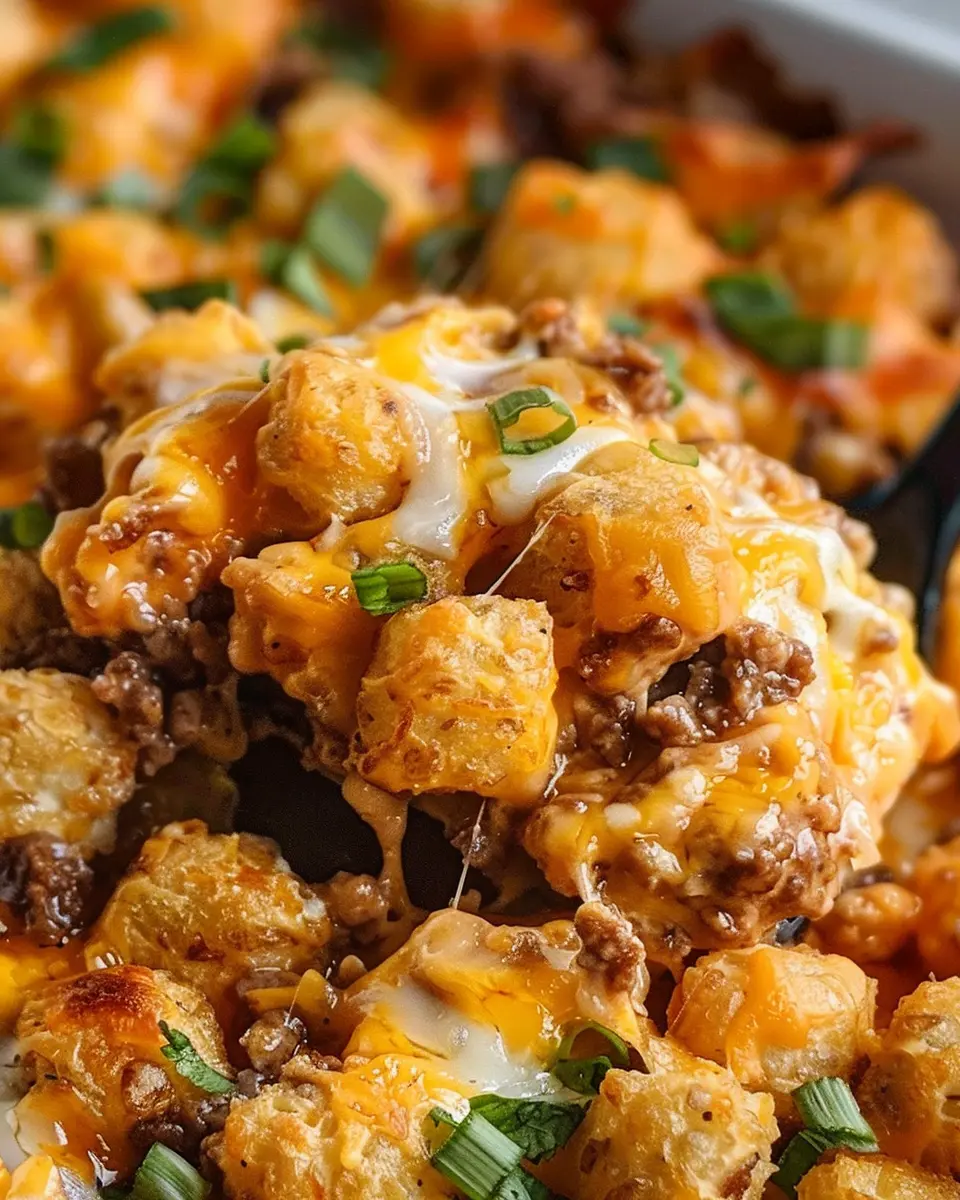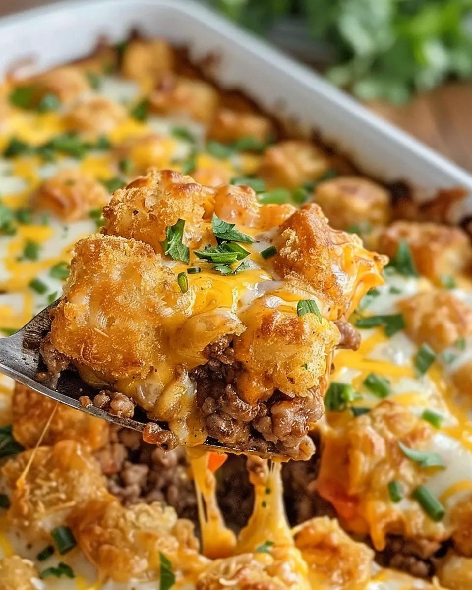 In summary, the Cheeseburger Tater Tot Casserole is a delightful and satisfying dish that’s perfect for a cozy weeknight dinner or a gathering with friends. Its comforting layers of savory ground beef, creamy cheese, and crispy tater tots create a flavor explosion that’s hard to resist. This dish not only brings nostalgia from classic comfort food but also allows for creative customization based on your preferences. For instance, consider swapping in different proteins like turkey bacon or chicken ham for added depth! Embrace the joy of cooking and share this recipe with loved ones—everyone deserves a taste of this cheesy goodness.