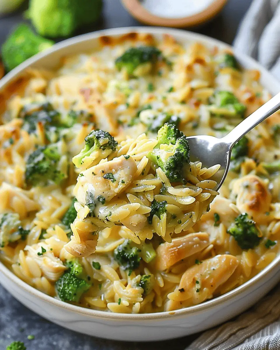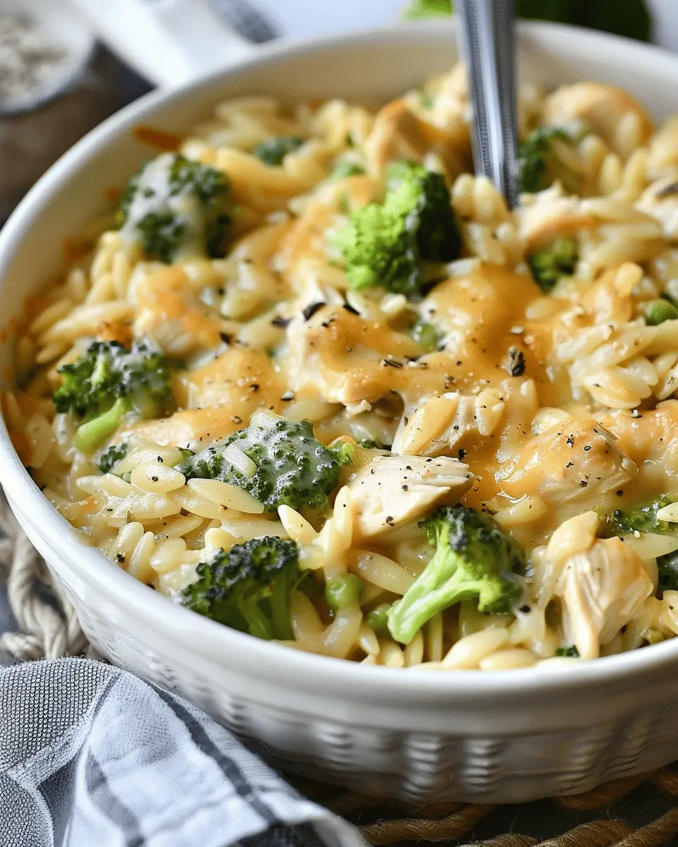 Why is cheesy chicken broccoli orzo such a hit among those in the 25–35 age range? For starters, this dish is versatile. Whether you’re cooking for yourself or hosting a small gathering, it’s both easy to scale and customize. You can swap out chicken for turkey or even increase the veggie content if you’re looking to sneak in more greens.
