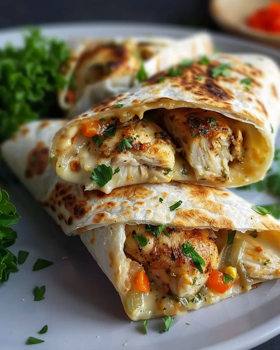 Keywords: Cheesy Garlic Chicken Wraps