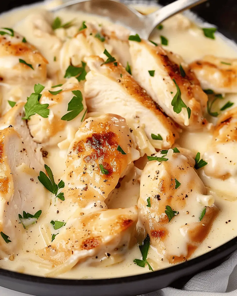 PrintChicken Alfredo Delight: Creamy, Pasta-Free Recipe with Turkey Bacon