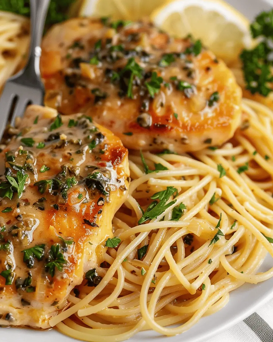 Once you’re set, the actual cooking time is roughly 25-30 minutes. This includes searing the chicken until golden and simmering the pasta to perfection. It’s a great opportunity to multitask—sauté those garlic and capers while the pasta cooks!