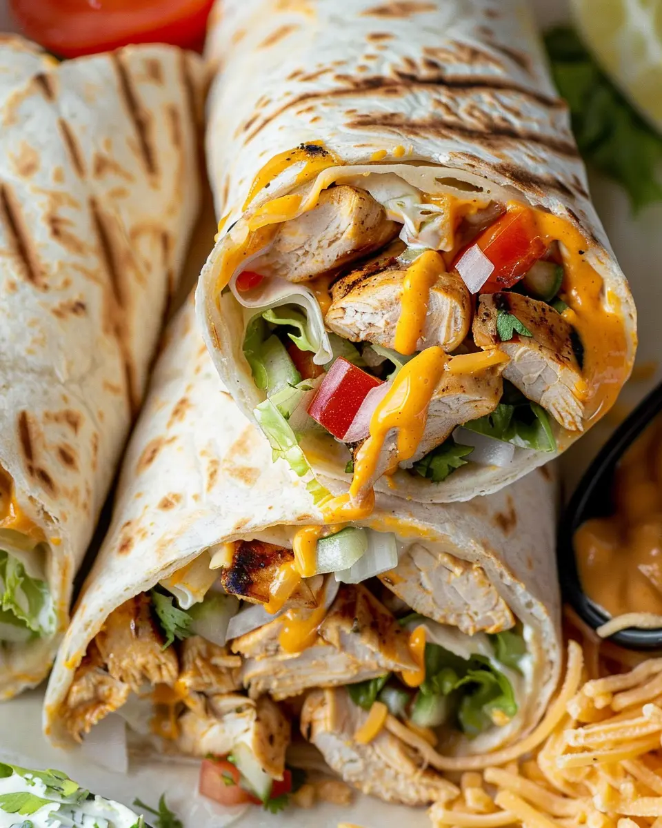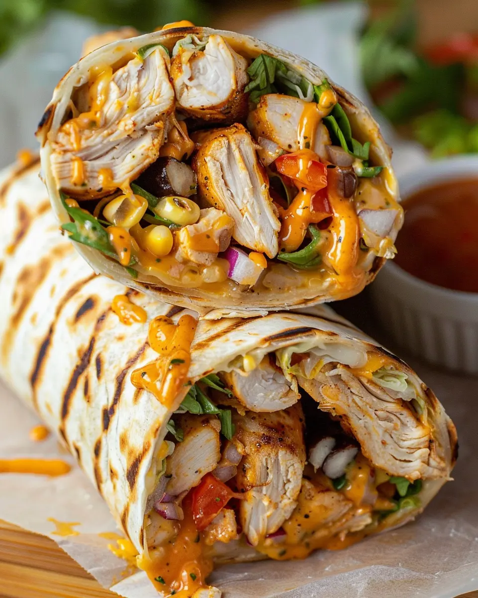 Absolutely! This recipe is incredibly flexible. If you’re not in the mood for grilled chicken, consider alternatives like turkey bacon, shrimp, or even a vegetarian option such as black beans or grilled vegetables. For toppings, think outside the box! You can sprinkle in some corn salsa for sweetness, swap in chicken ham for a different protein kick, or load up on fresh veggies like lettuce and tomatoes. The possibilities are endless, making each burrito a unique creation.