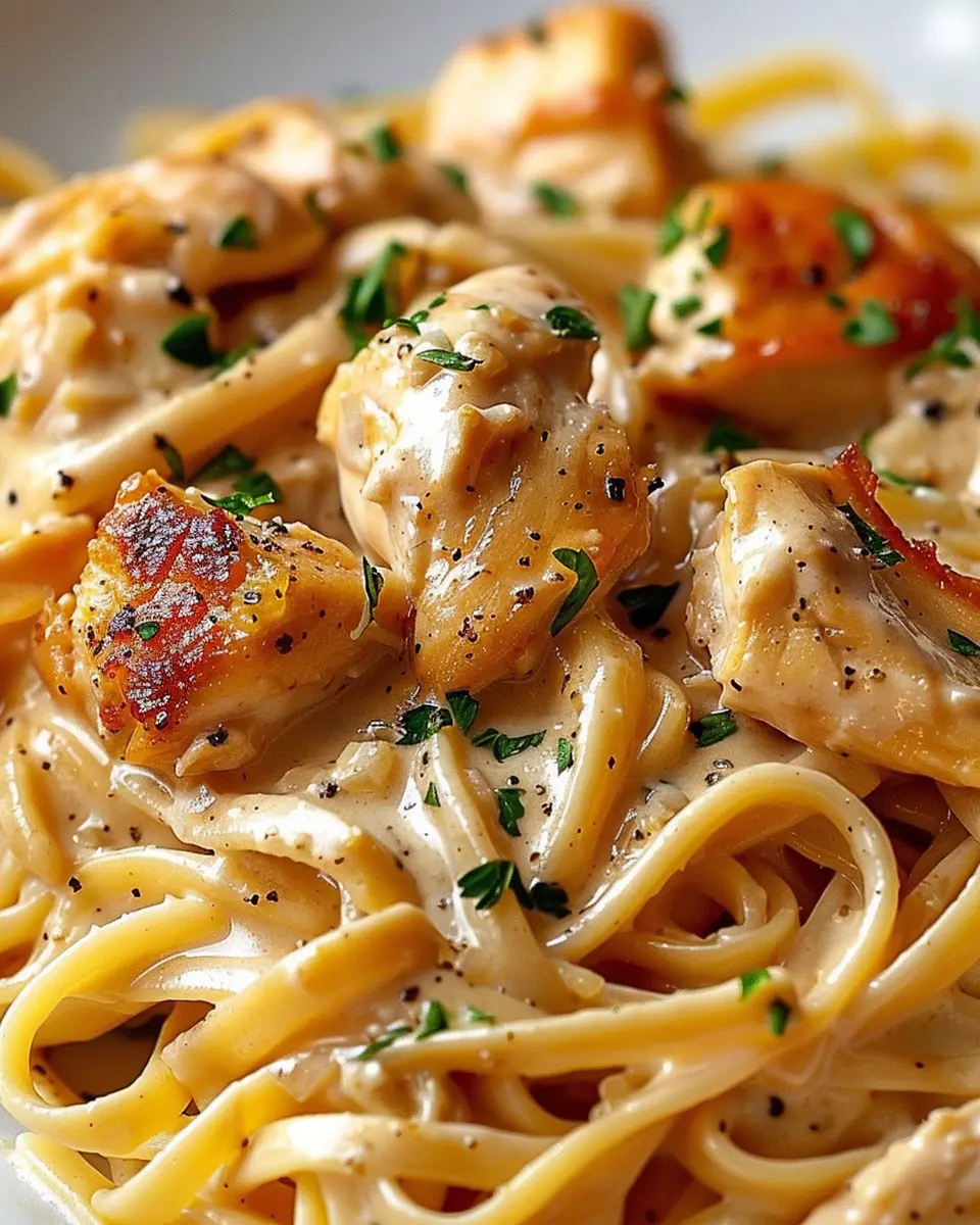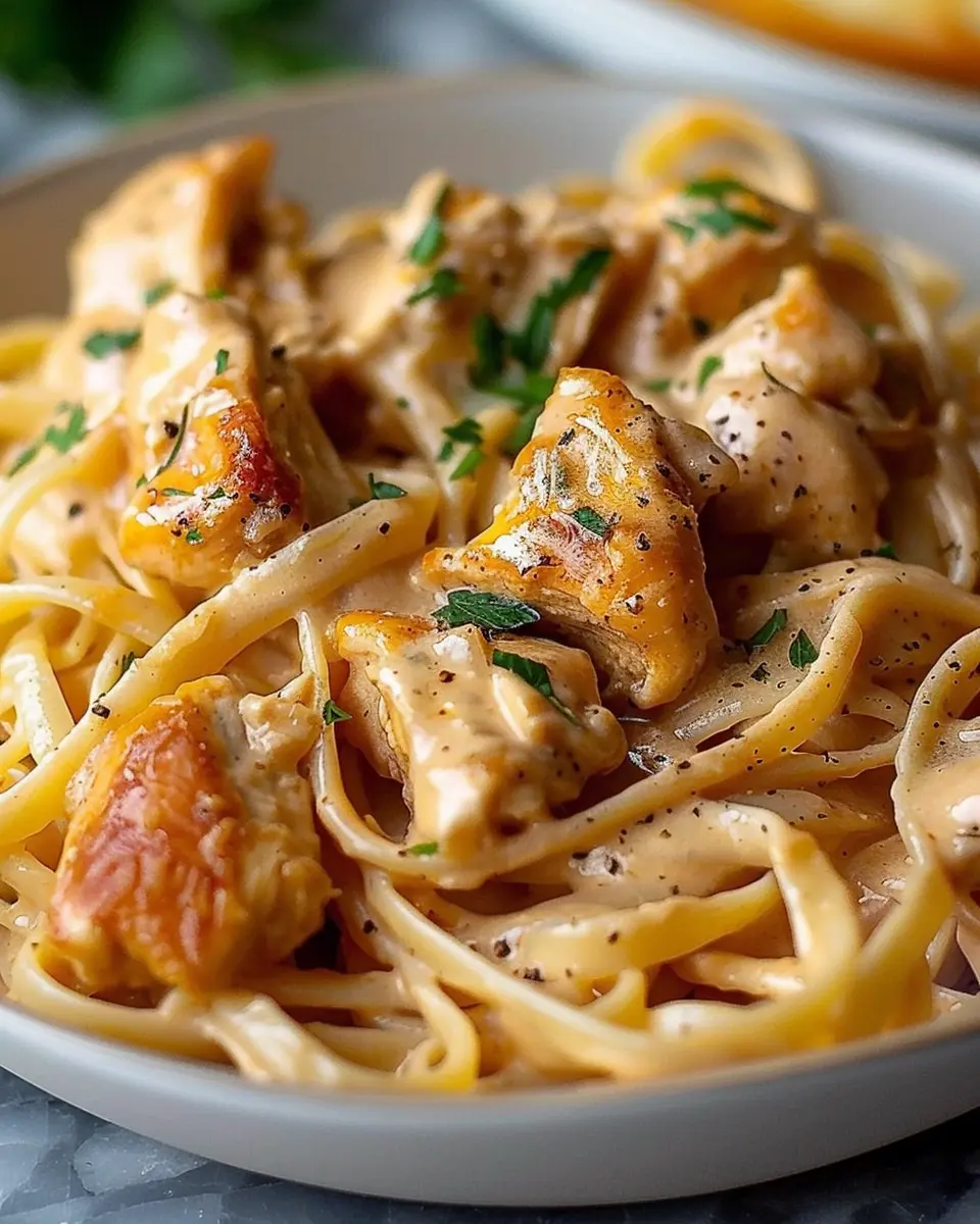 Here’s a little tip: If you want to make your dish even more indulgent, sprinkle in some grated Parmesan cheese while the sauce is cooking. It adds a cheesy goodness that pairs magnificently with the chicken and pasta.