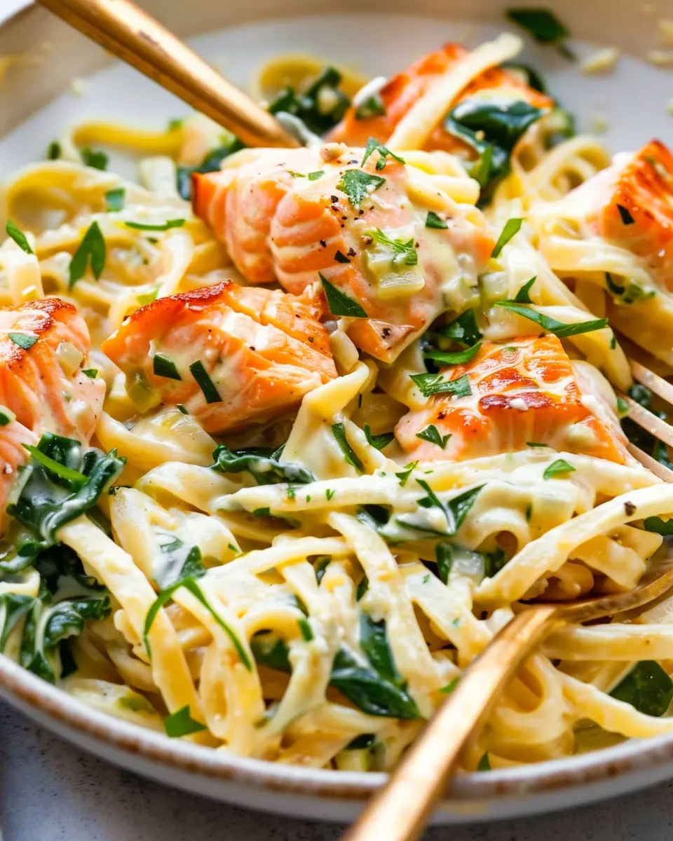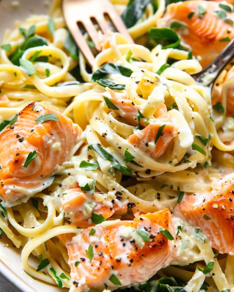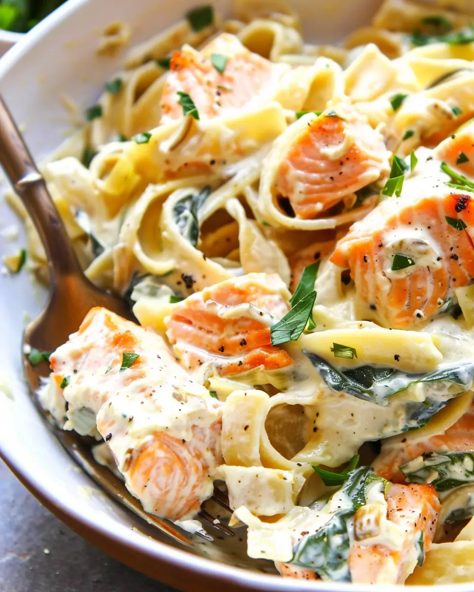 Creamy Salmon Pasta: A Delicious Twist with Mixed Greens