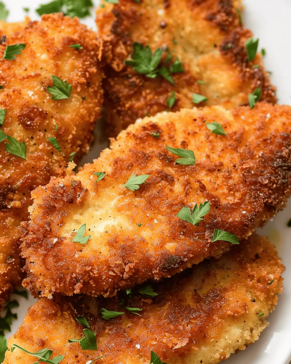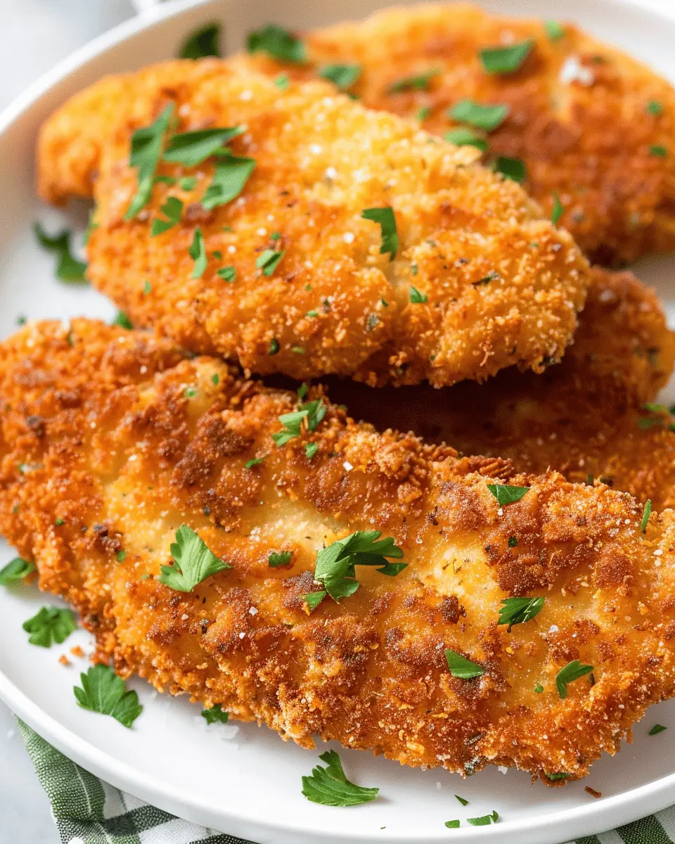 • Dish 3: A mixture of breadcrumbs (panko works wonderfully for extra crunch) combined with your choice of finely chopped herbs—think parsley, basil, or thyme. This will not only add flavor but also elevate your crispy chicken cutlets to another level.