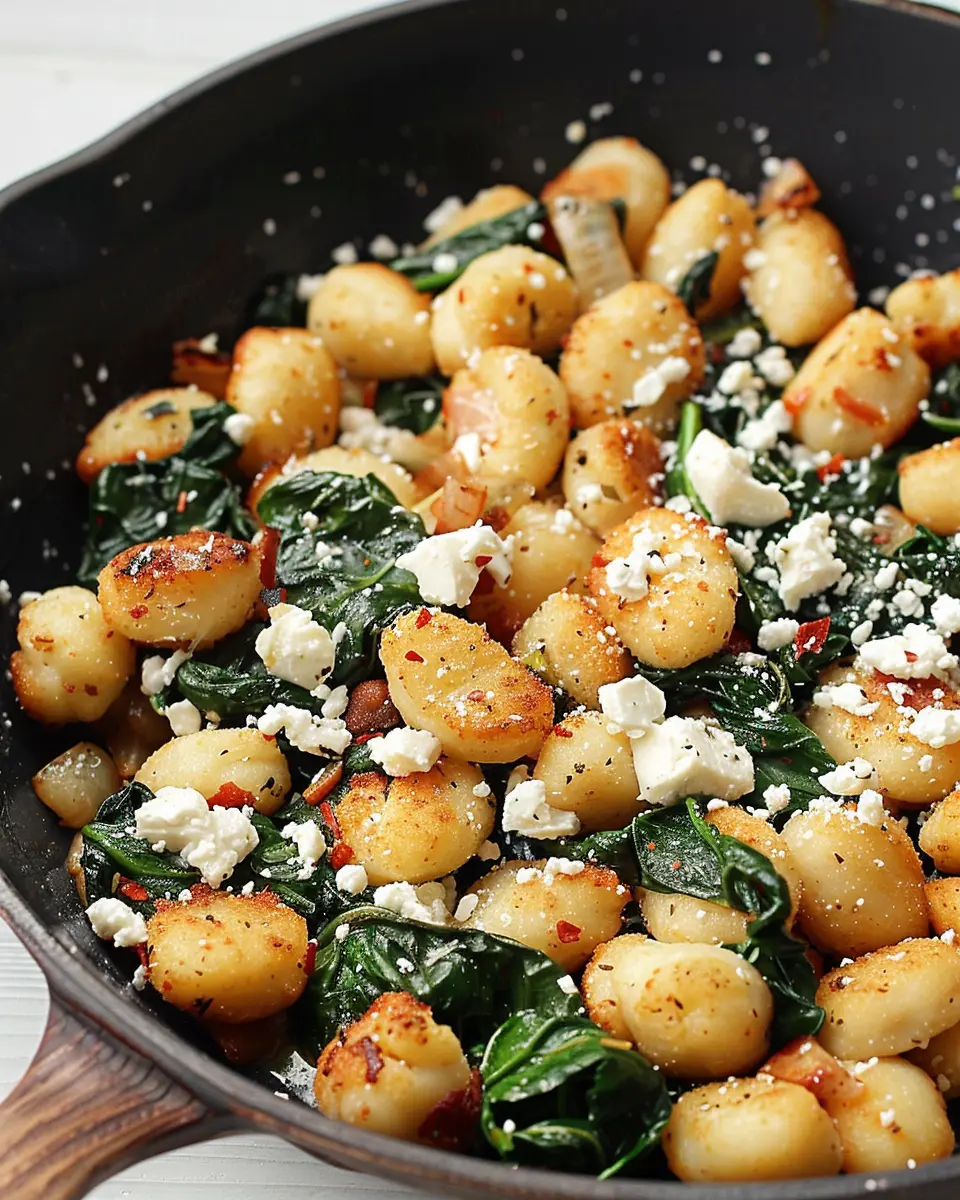 This crispy gnocchi dish combines the delightful textures of pan-fried gnocchi with the vibrant flavors of spinach and salty feta, making it the perfect comfort food.