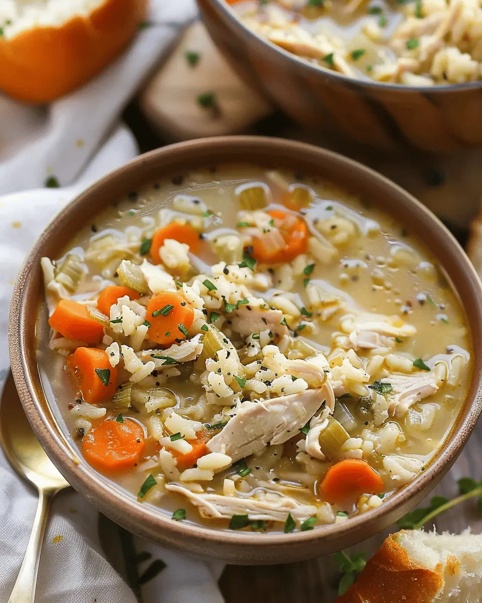 In conclusion, Crockpot Chicken and Rice Soup is not just a meal; it’s a warm hug on a chilly evening. This recipe combines wholesome ingredients like tender chicken and hearty rice, simmered to perfection, making it both nutritious and satisfying. Plus, the convenience of using a crockpot means you can set it and forget it—perfect for your busy lifestyle.