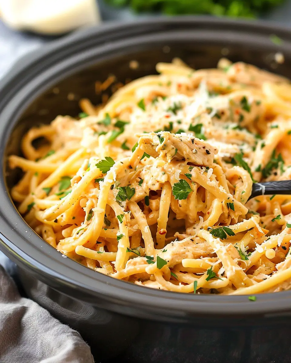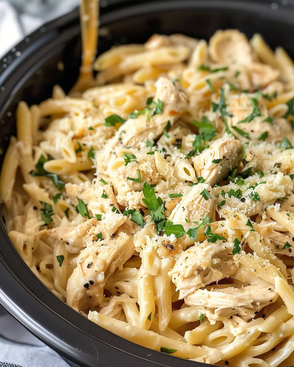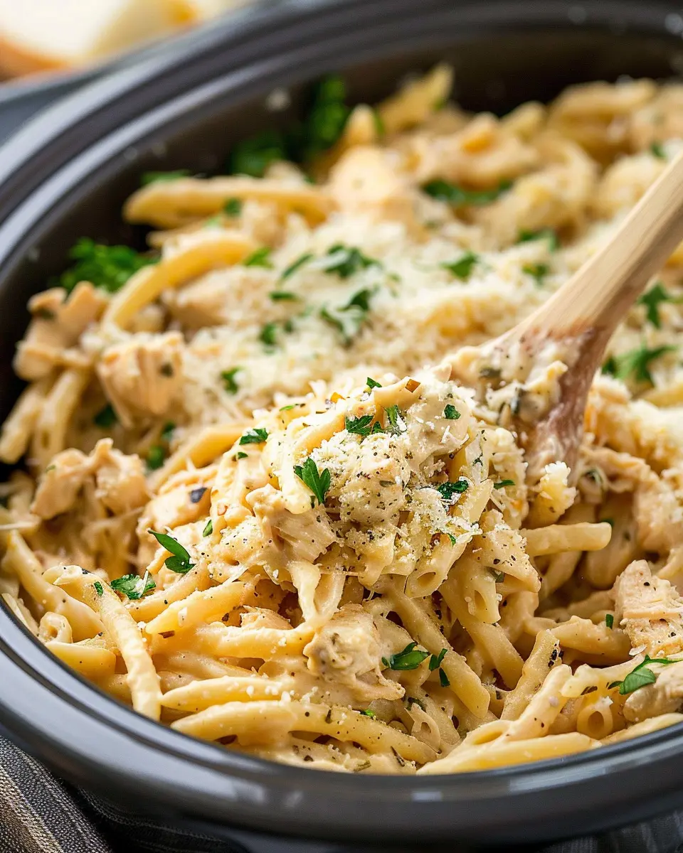 PrintCrockpot Garlic Parmesan Chicken Pasta: Easy Comfort Food Delight