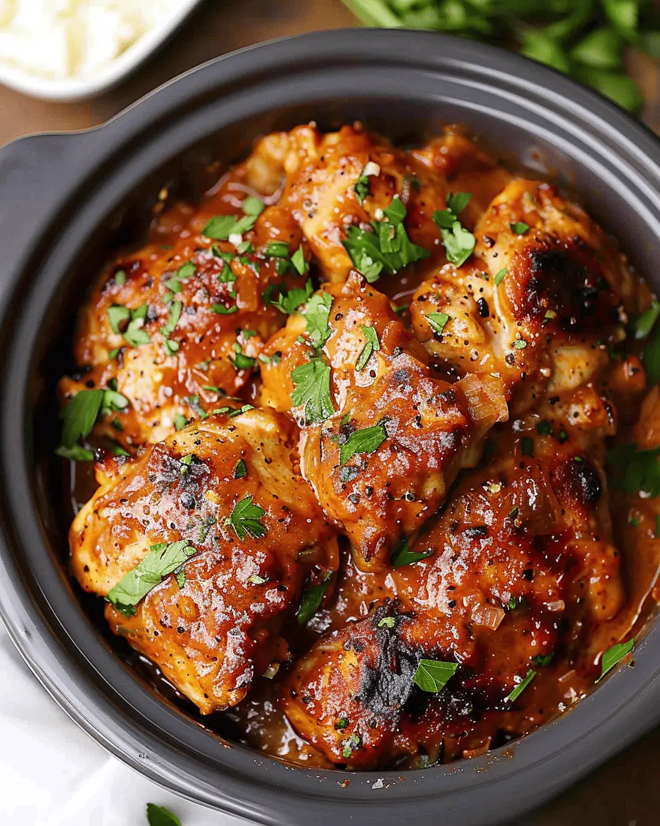 - Pro tip: If you’re in a hurry, you can also sauté the chicken briefly in olive oil before placing it in the slow cooker. It will add an extra depth of flavor!