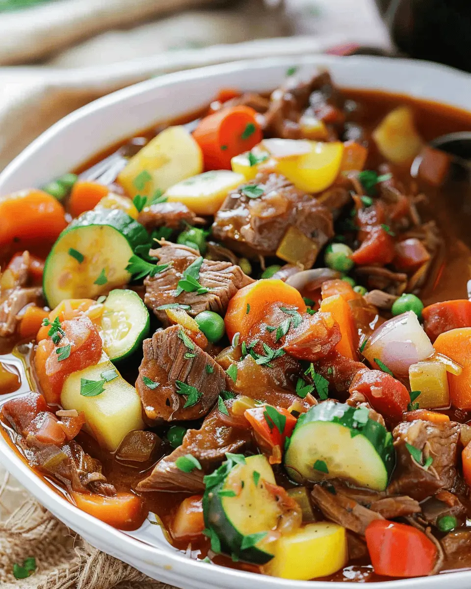 If you’re looking to enjoy Crockpot Summer Beef Stew without the meat, consider swapping in a hearty array of vegetables and legumes. Try using a base of vegetable broth and loading your crockpot with ingredients like: