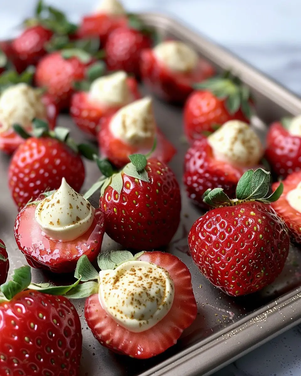Deviled strawberries are a delightful and elegant treat, perfect for any occasion. These creamy, sweet, and slightly tangy bites are sure to impress your guests!