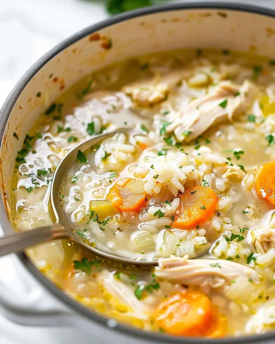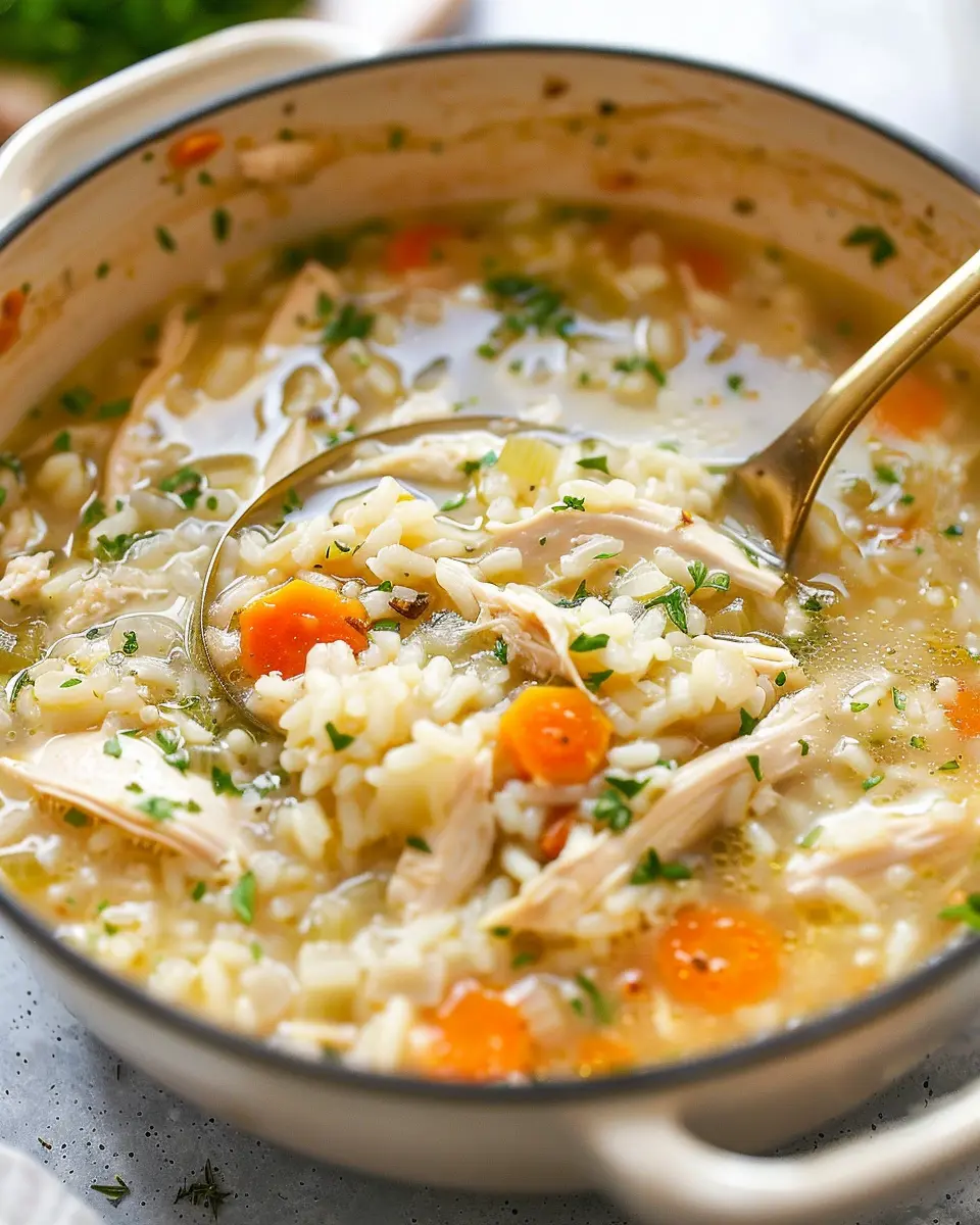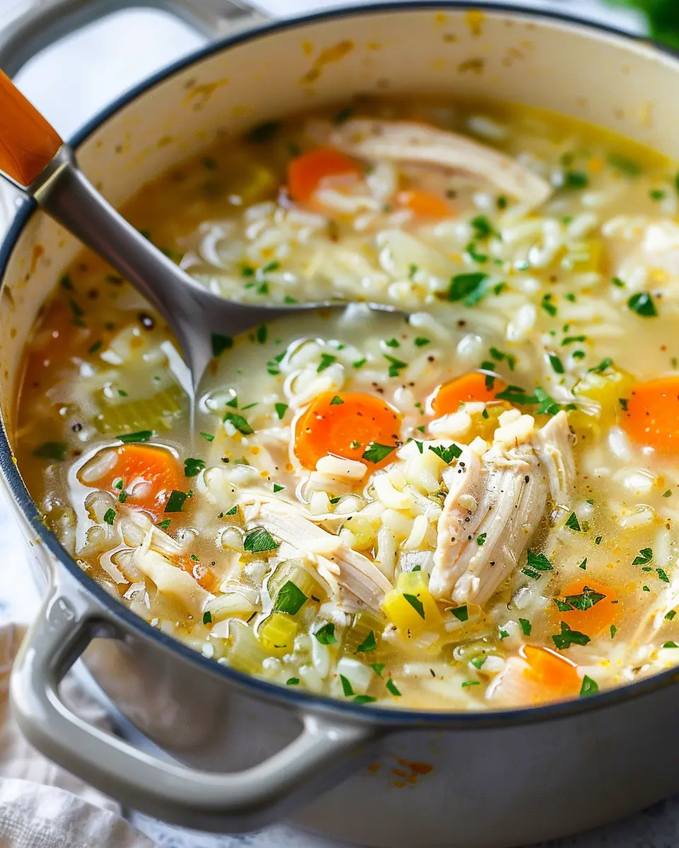 This Easy Chicken and Rice Soup is perfect for a healthy and comforting meal, providing warmth and nourishment.