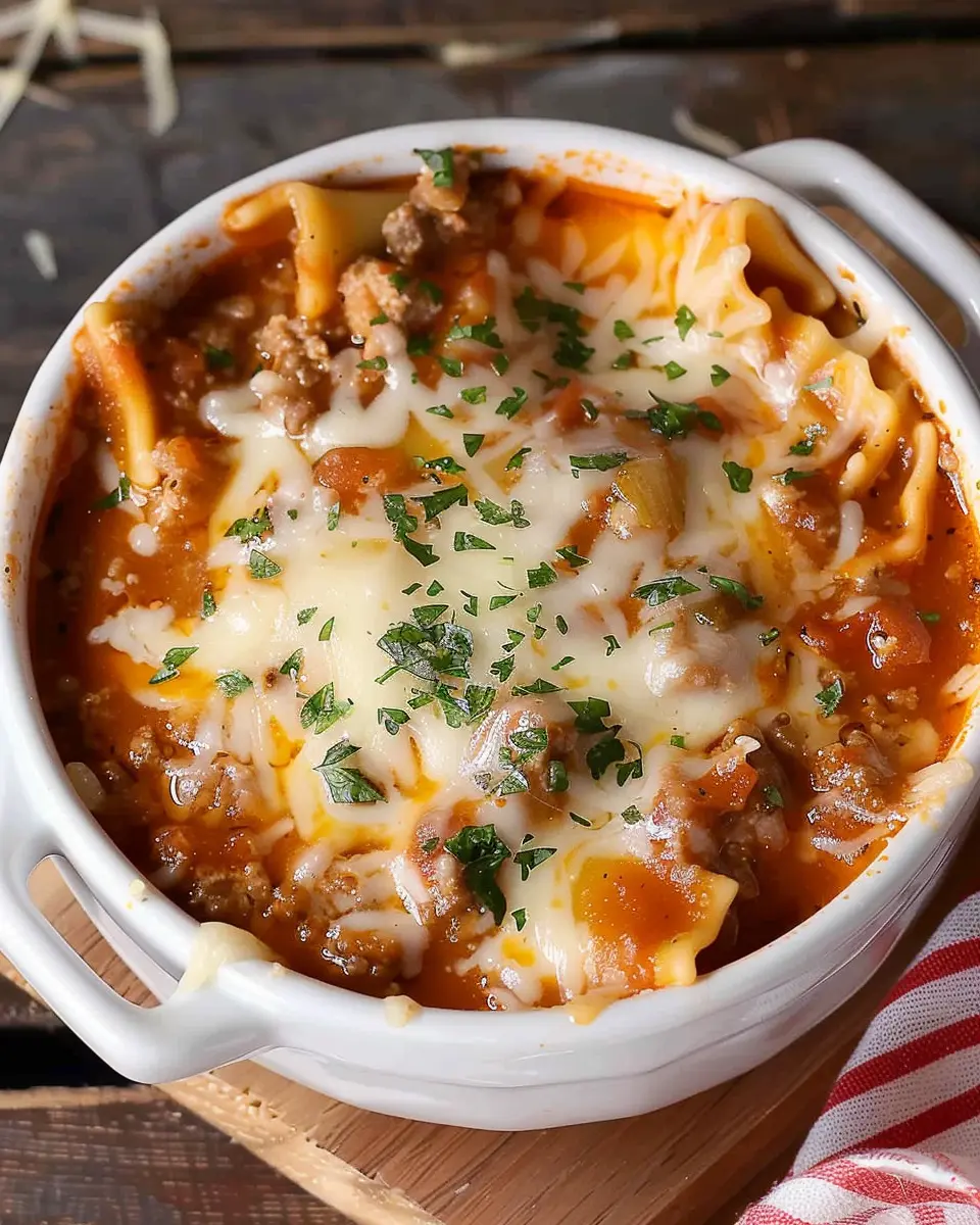 With just a little time invested, you’ll be rewarded with a deliciously satisfying meal that brings all the joys of lasagna in a quick and comforting soup form—a perfect addition to your recipe collection!