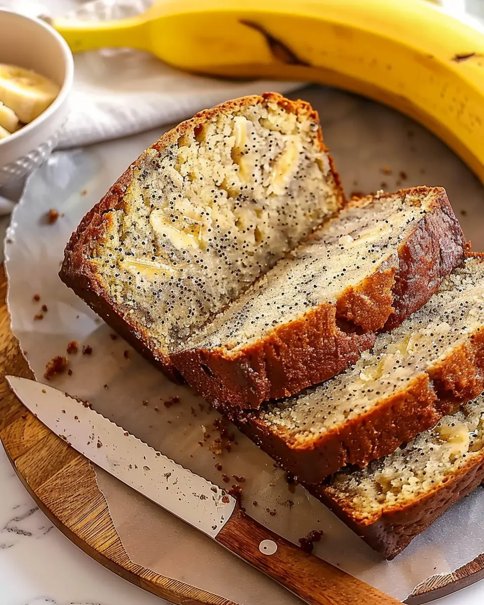 Once baked, allow your banana bread to cool in the pan for about 10 minutes before transferring it to a wire rack. Then, slice it up and enjoy!