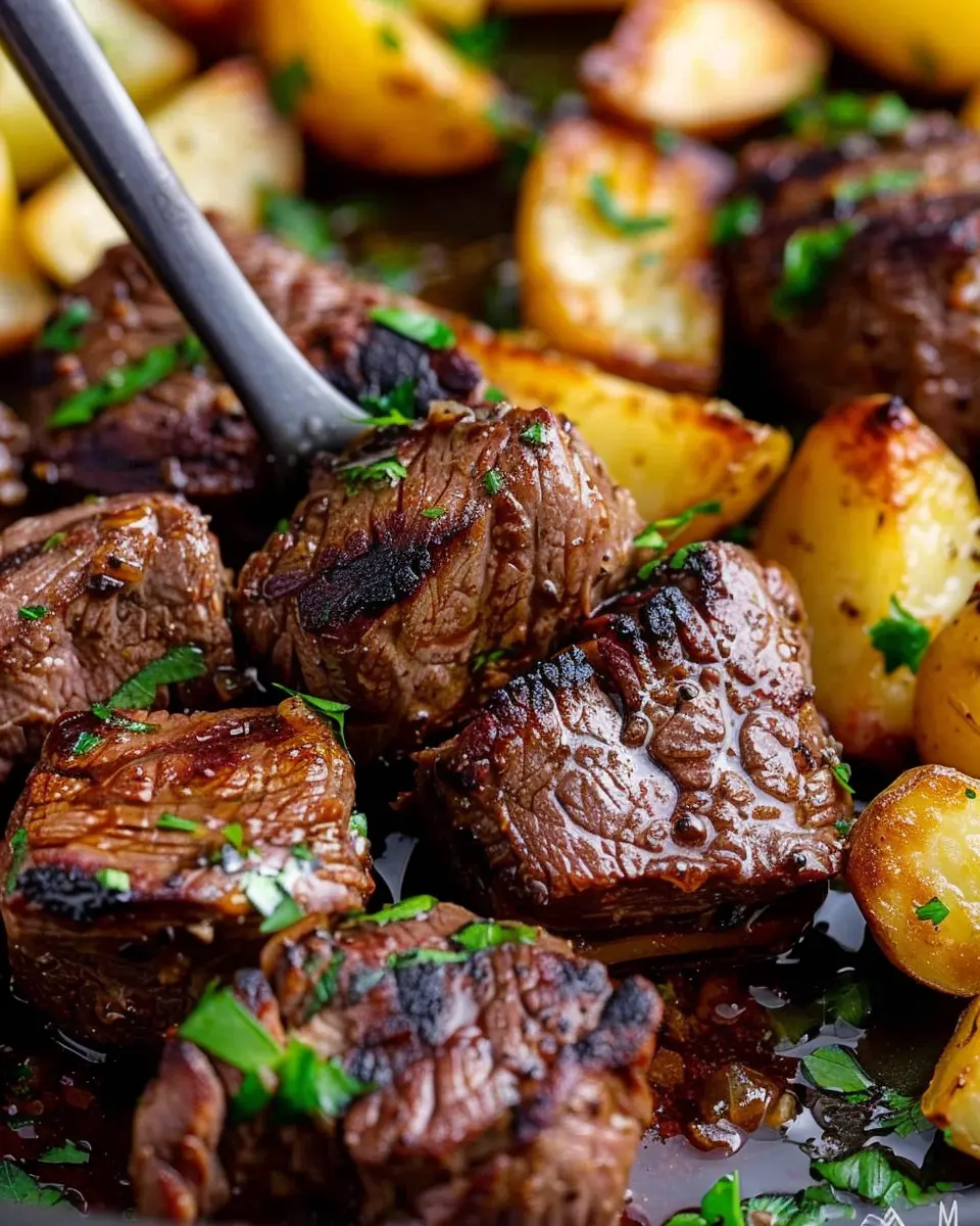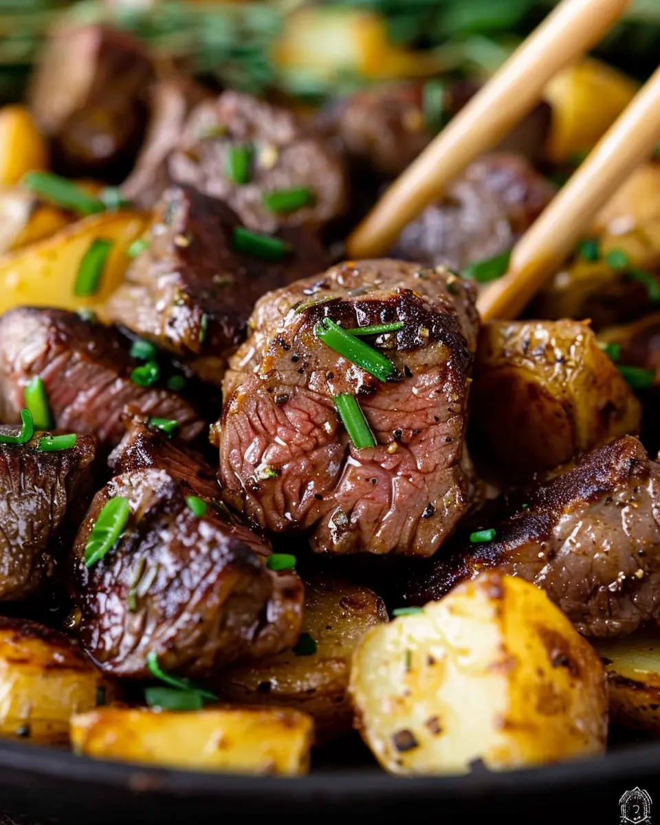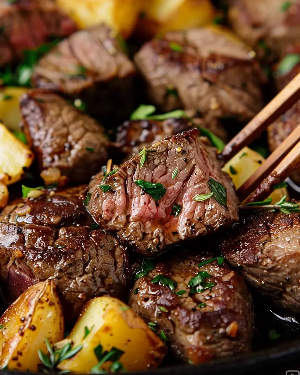 Indulge in the rich flavors of garlic butter steak bites paired with tender potatoes, a perfect meal for any occasion.