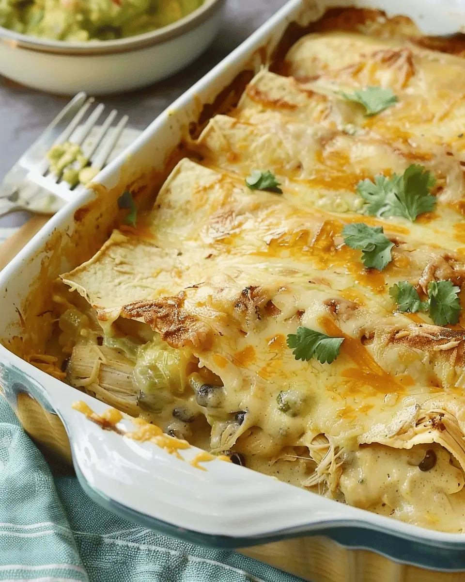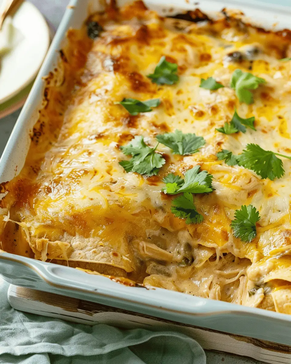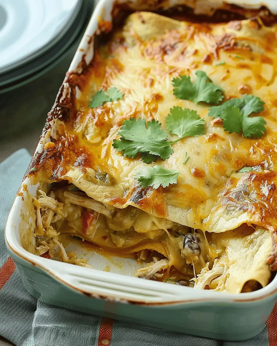 In summary, the green chile chicken enchilada casserole is a true crowd-pleaser, perfect for busy weeknights or casual gatherings with friends. This dish combines the spicy warmth of green chiles with tender chicken and gooey cheese, creating a mouthwatering meal that’s both hearty and satisfying. Plus, it’s versatile—feel free to swap in your favorite fillings or toppings to make it your own.