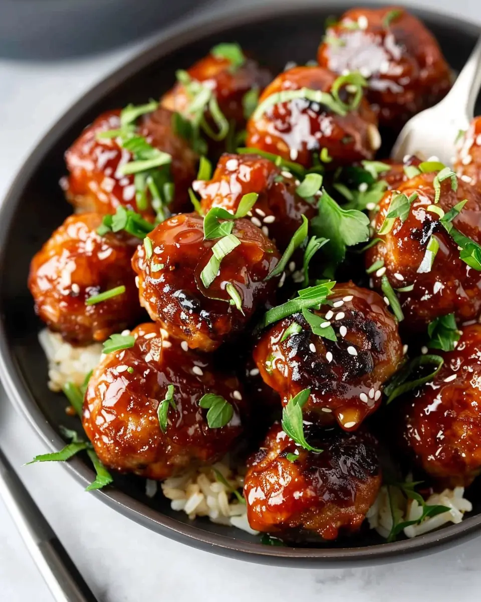 A delicious and easy recipe for honey garlic meatballs with a twist of turkey bacon, perfect for a quick dinner.