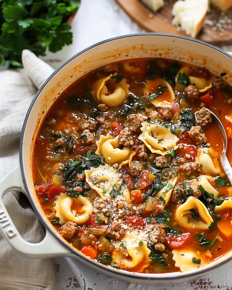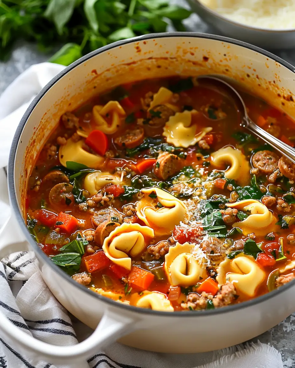 This Italian Sausage Tortellini Soup is a hearty and comforting dish that brings together savory sausage, tender tortellini, and fresh vegetables.