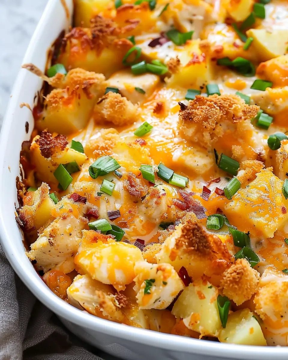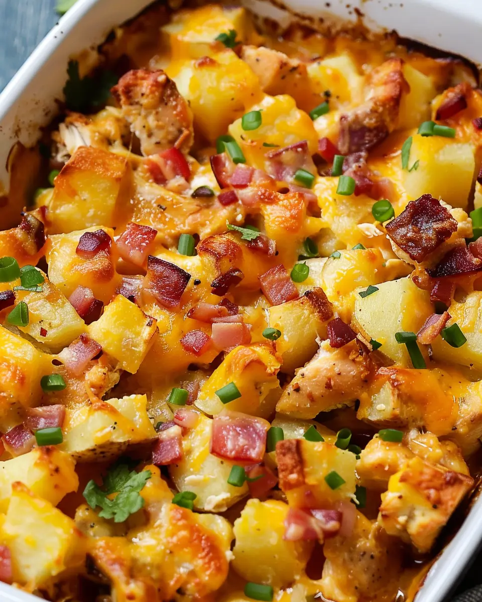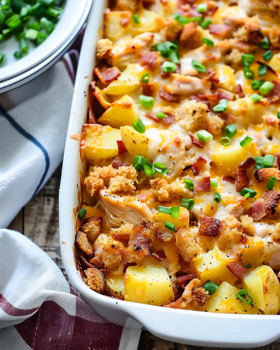 Experience the ultimate comfort food with this loaded chicken and potato casserole, perfect for family gatherings.