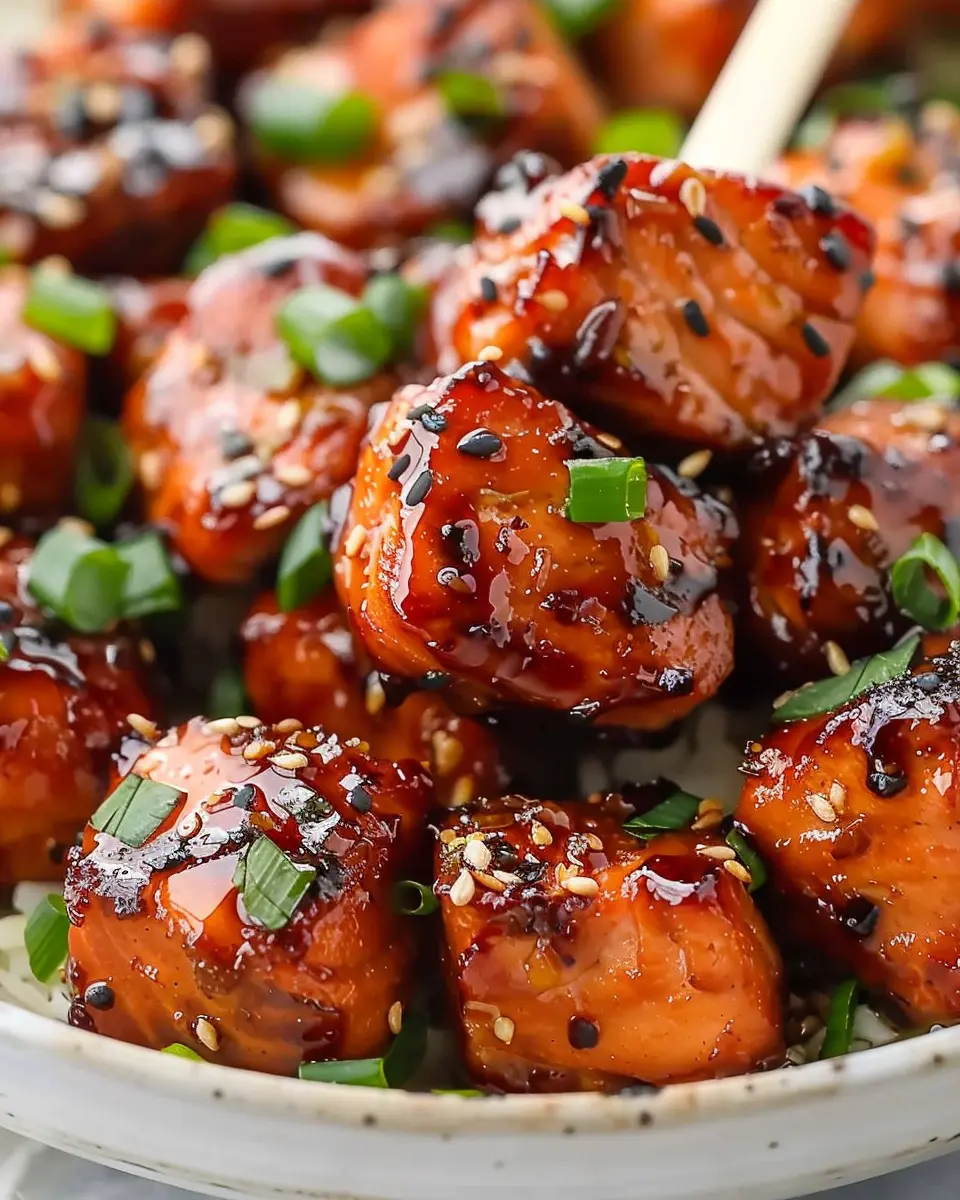 In summary, these mouthwatering honey garlic salmon bites are an ideal dish that effortlessly brings together sweet and savory flavors. Whether you’re entertaining friends or treating yourself after a long week, these delightful bites are simple to prepare and sure to impress. With just a handful of ingredients, you can whip up a delicious meal that’s not only nutritious but also bursting with flavor. Serve them as an appetizer or pair with a side of veggies for a complete dinner. So, why not give this recipe a try? Your taste buds will thank you! For more cooking ideas, check out sources like Epicurious or Serious Eats.