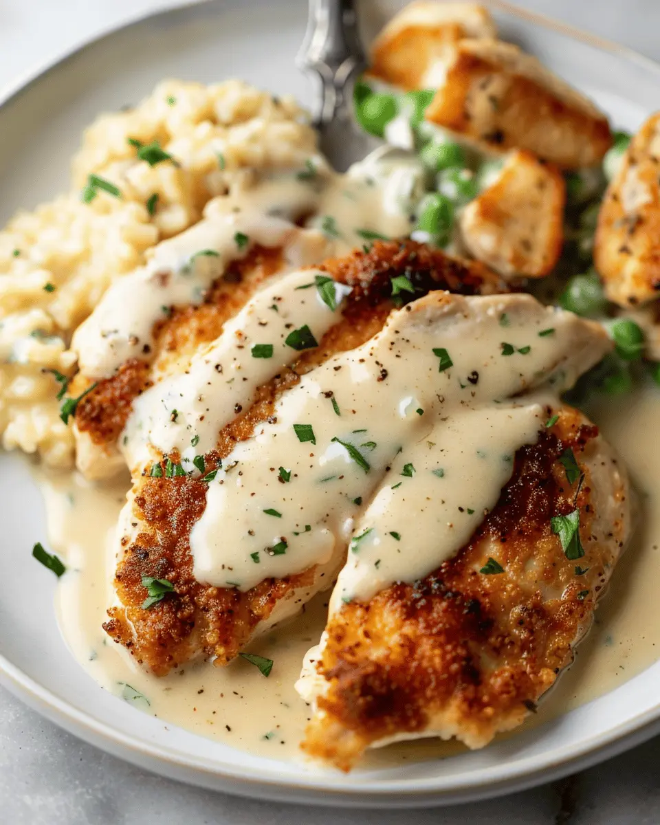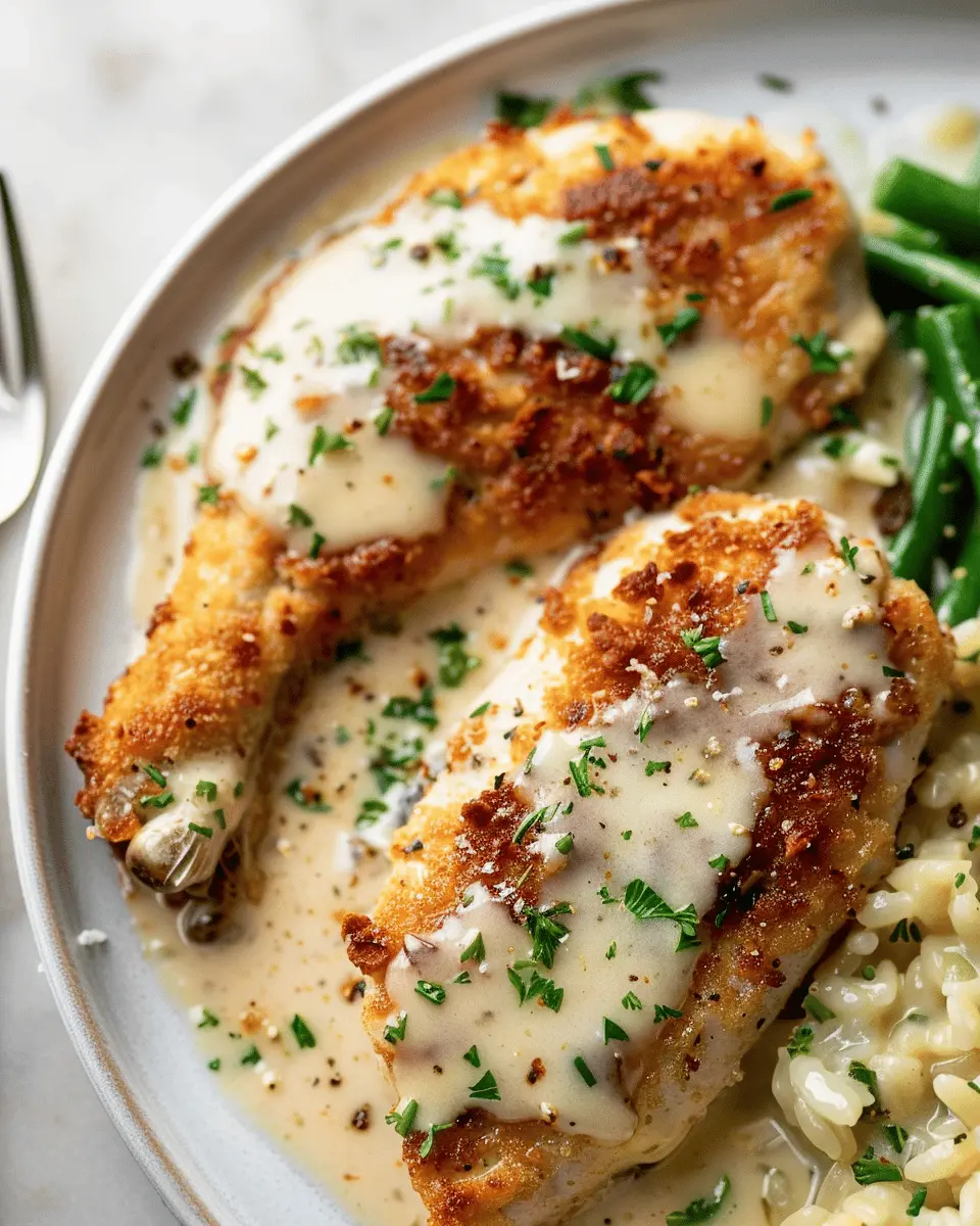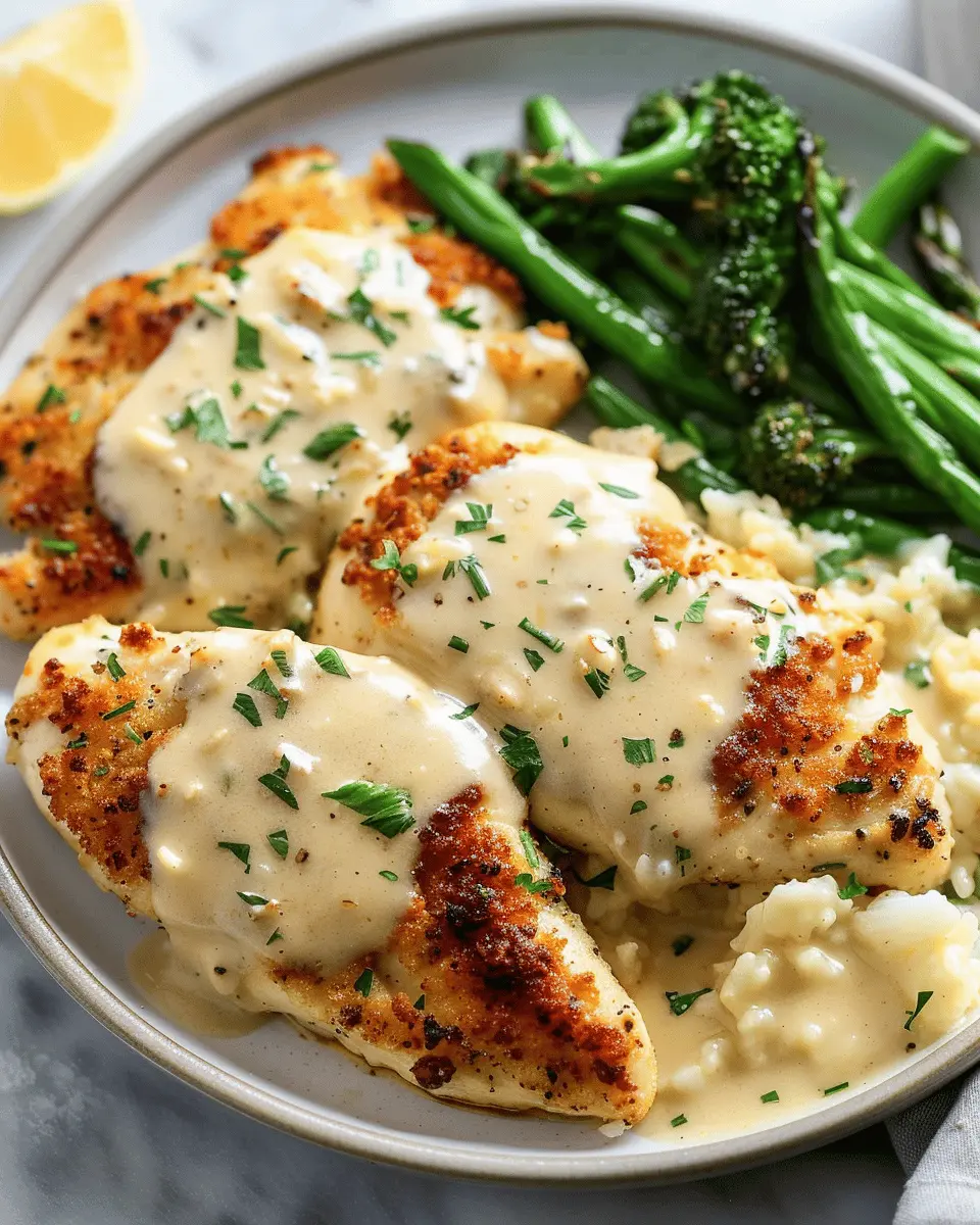 Keywords: Parmesan Crusted Chicken, Creamy Garlic Sauce, Chicken Recipes, Indulgent Dinner
