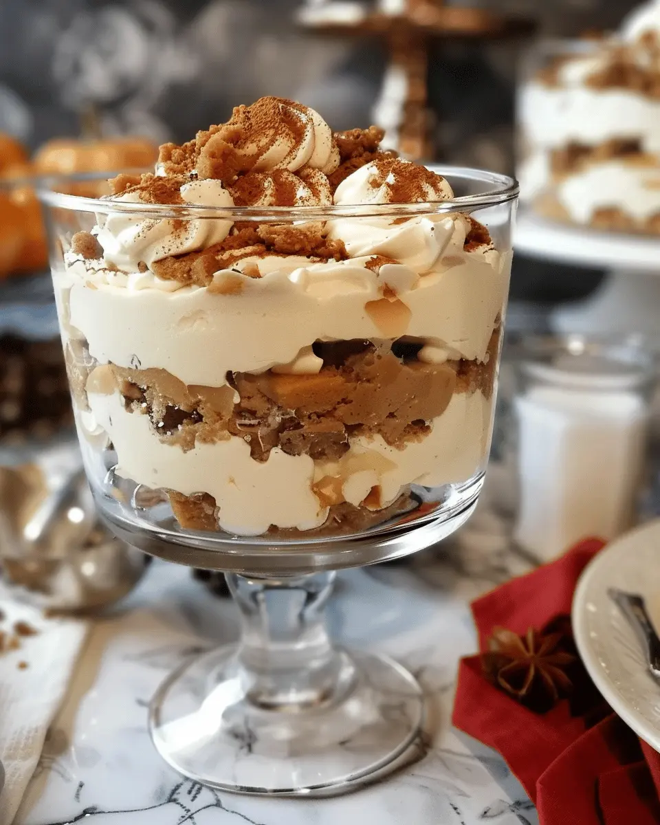 This combination not only tastes divine but also gives your trifle that lovely pumpkin spice essence we all adore. If you’re keen on trying different flavors, consider adding a splash of vanilla extract—an expert tip for enhancing dessert profiles.