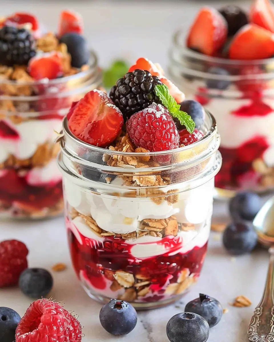 Making a berry parfait is as easy as layering yogurt, fresh berries, and a sprinkle of granola or nuts. The best part? You can tailor it to your taste and dietary preferences! Want to go dairy-free? Substitute the yogurt with a plant-based version. Craving more crunch? Double the granola layer. There’s no right or wrong way to create your parfait, which makes it a fun and customizable dessert.