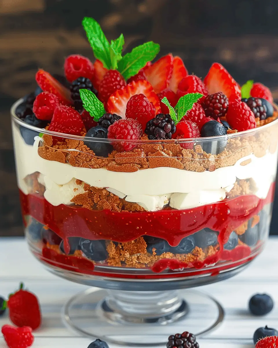 In conclusion, the red velvet berry trifle is a delightful dessert combining rich flavors and vibrant colors, perfect for any occasion. It layers the classic taste of red velvet cake with fresh berries and creamy goodness, creating a visually stunning treat that’s sure to impress your guests. If you’re looking for a dessert that’s easy to assemble yet utterly delicious, this trifle should be at the top of your list.