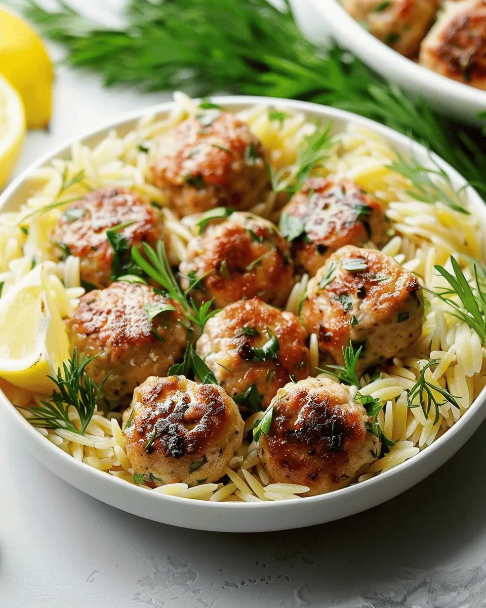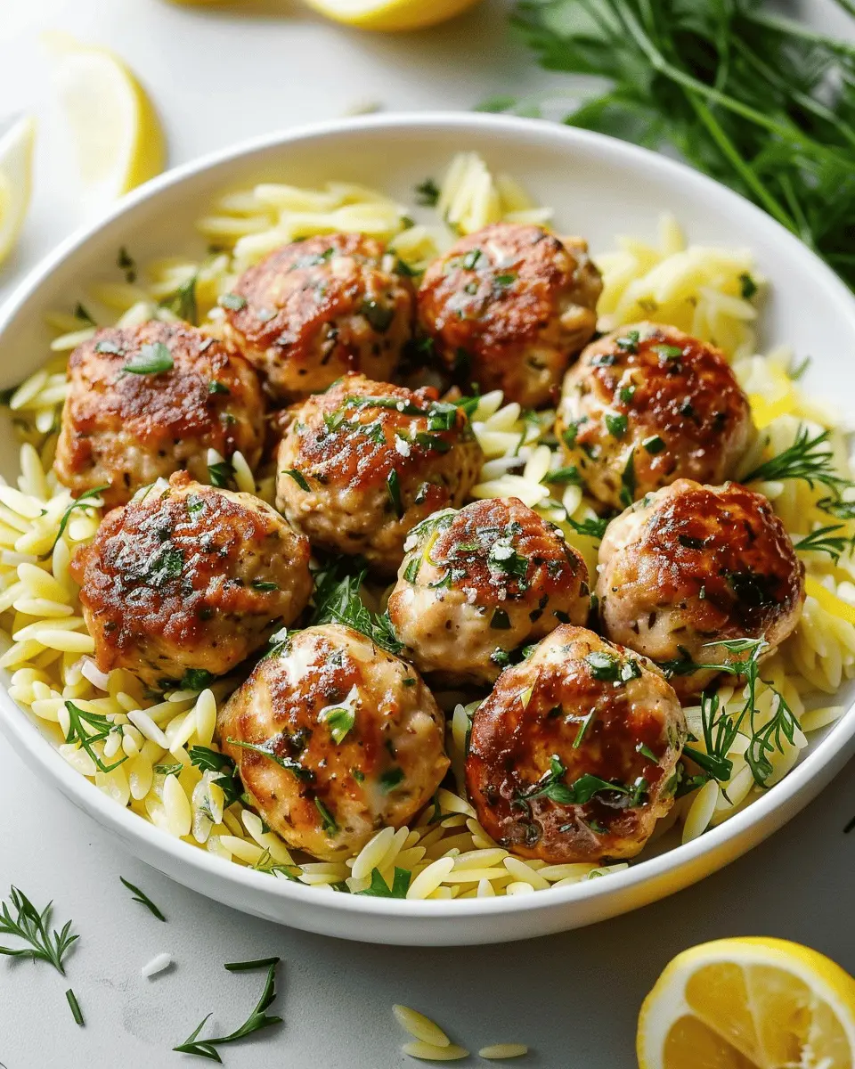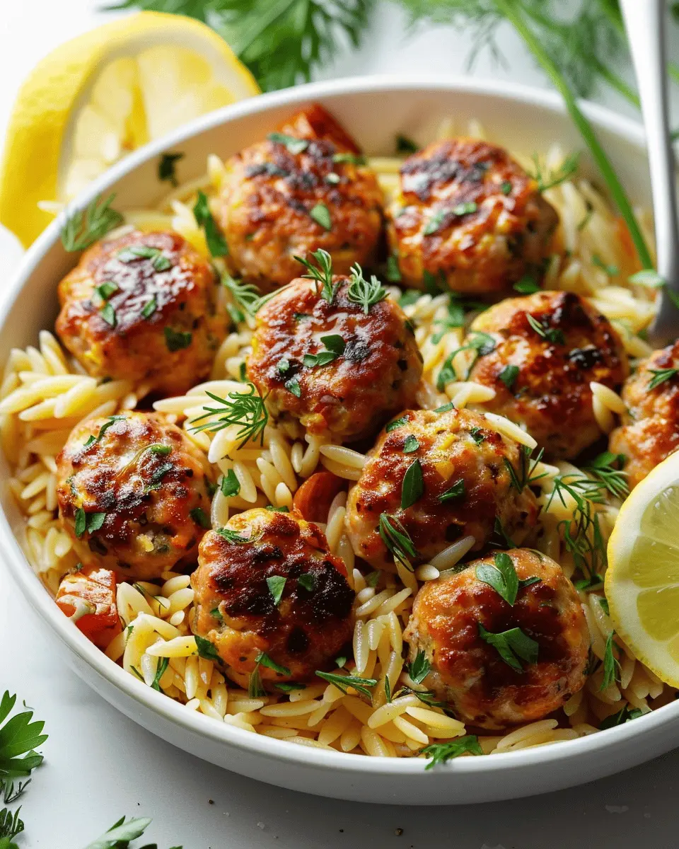Keywords: Savory Greek Chicken Meatballs, Zesty Lemon Orzo