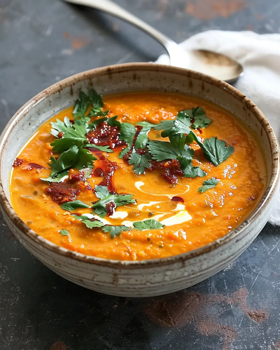 PrintSpiced carrot and red lentil soup: Easy comfort with coconut and tamarind chili oil