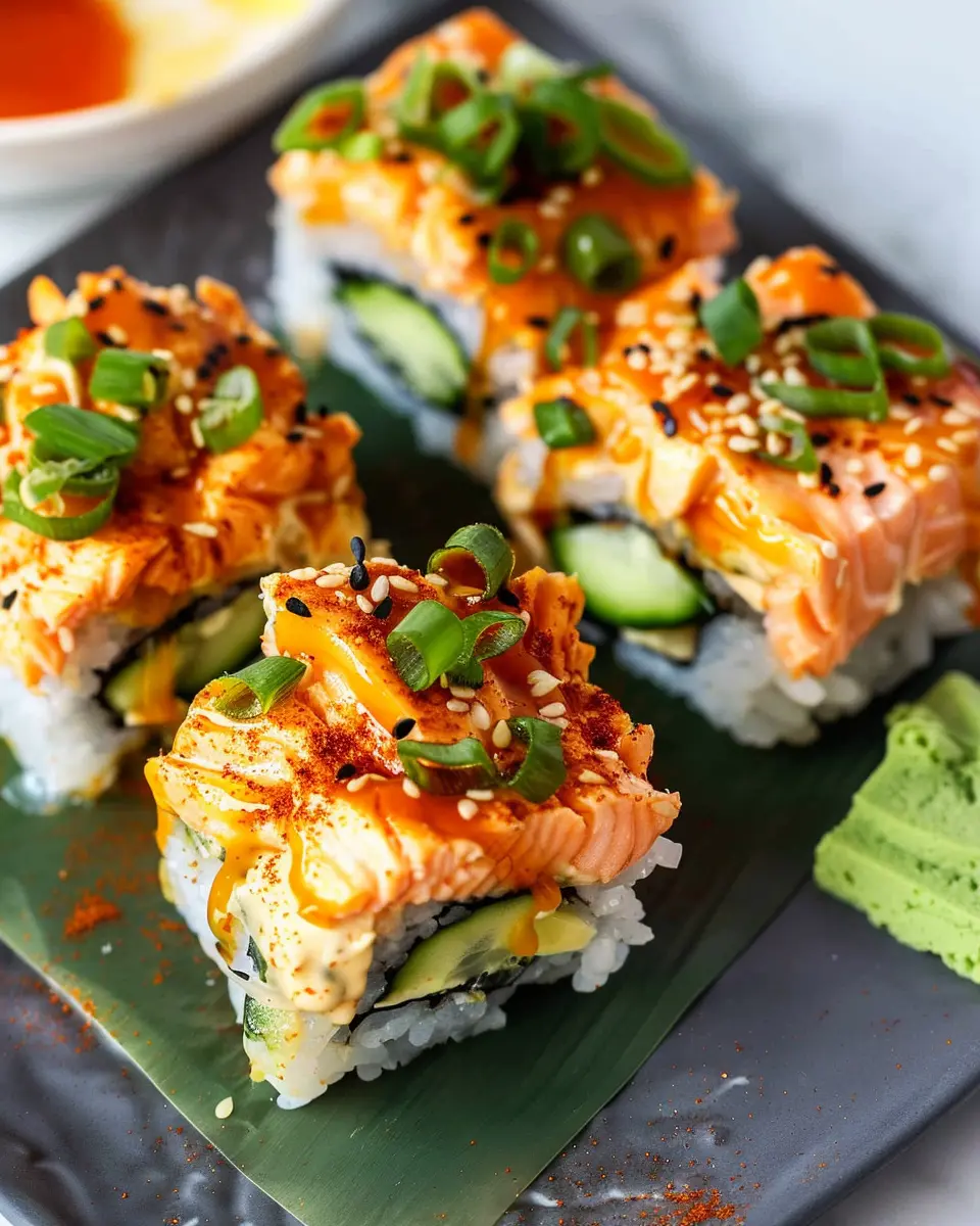 Make-You-Full Satisfaction: Packed with protein and umami flavors, the spicy salmon sushi bake is incredibly filling. Its combination of rice and salmon offers a nutritious balance that keeps you energized—no mid-afternoon slump here!