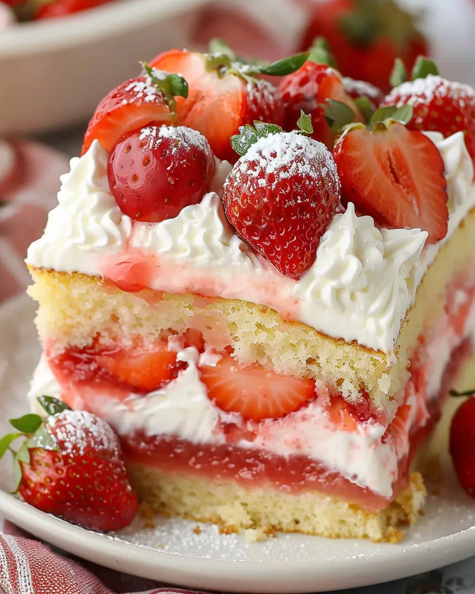 And there you have it! Your strawberry shortcake sheet cake is now ready to be enjoyed. Perfect for sharing or indulging solo, you’ll find that this dessert isn’t just a treat; it’s a joyful experience. So, what do you say? Are you ready to whip up this delightful cake? Let’s turn those fresh strawberries into a masterpiece!