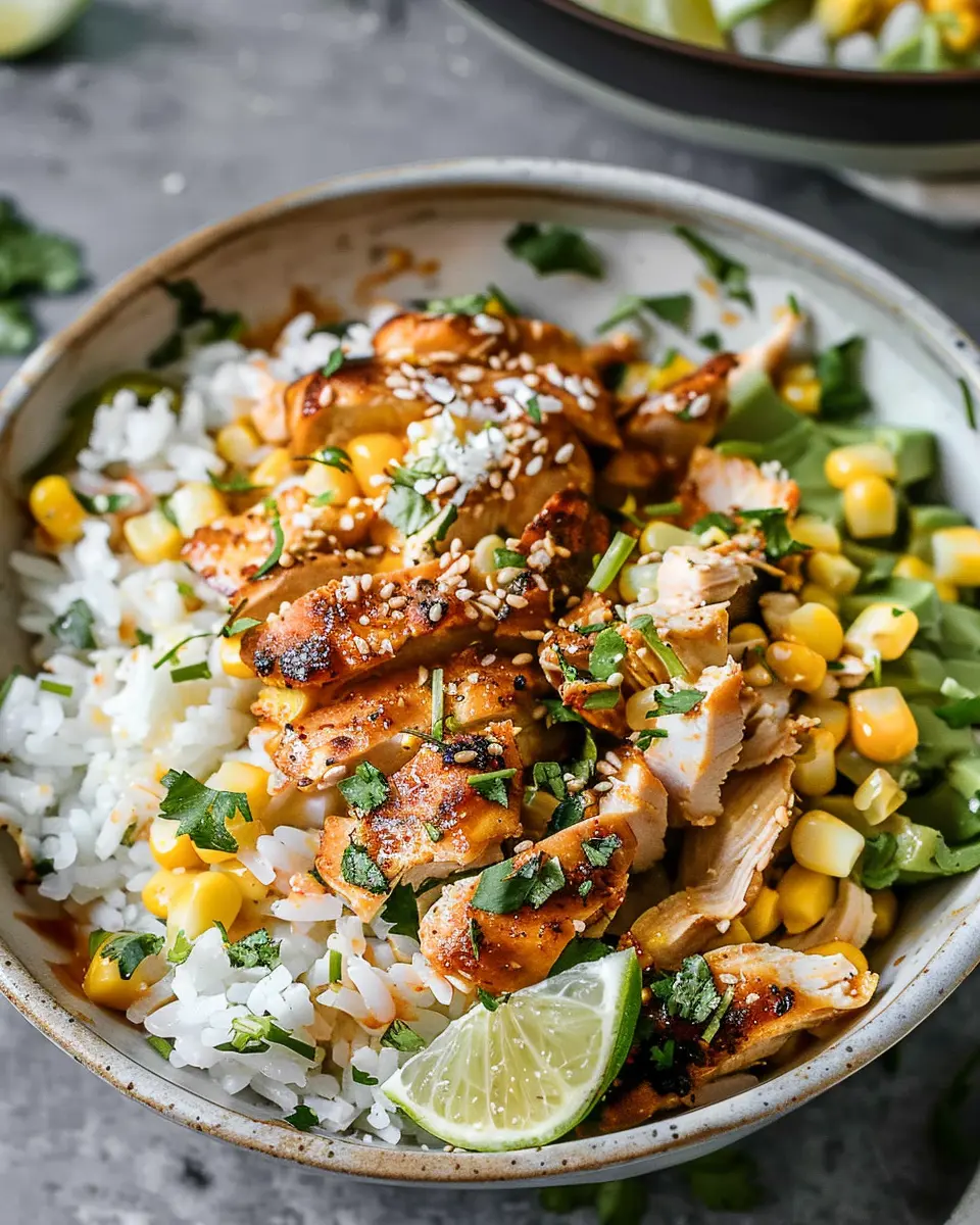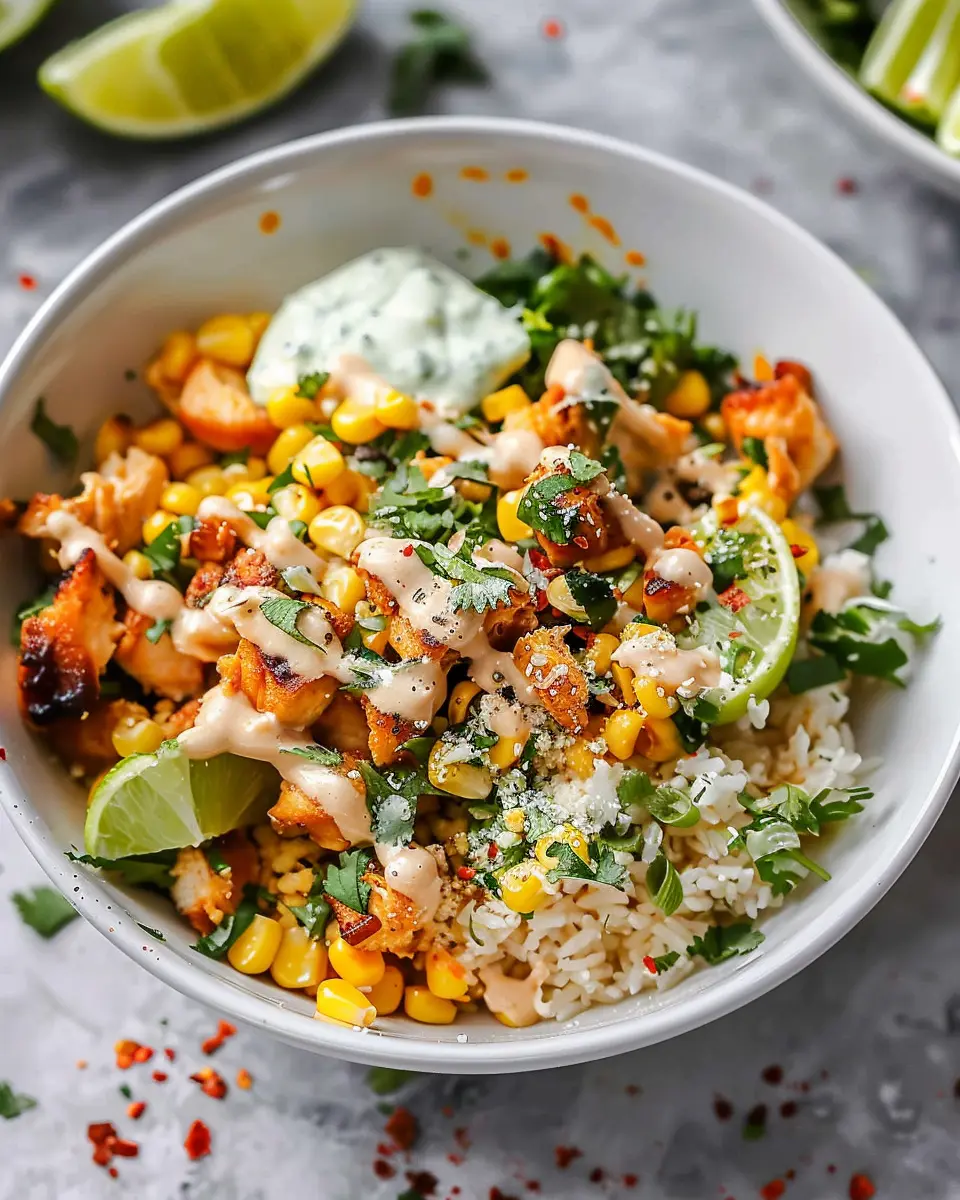 Keywords: Street Corn, Chicken, Rice Bowl, Easy Recipe, Flavorful Dish
