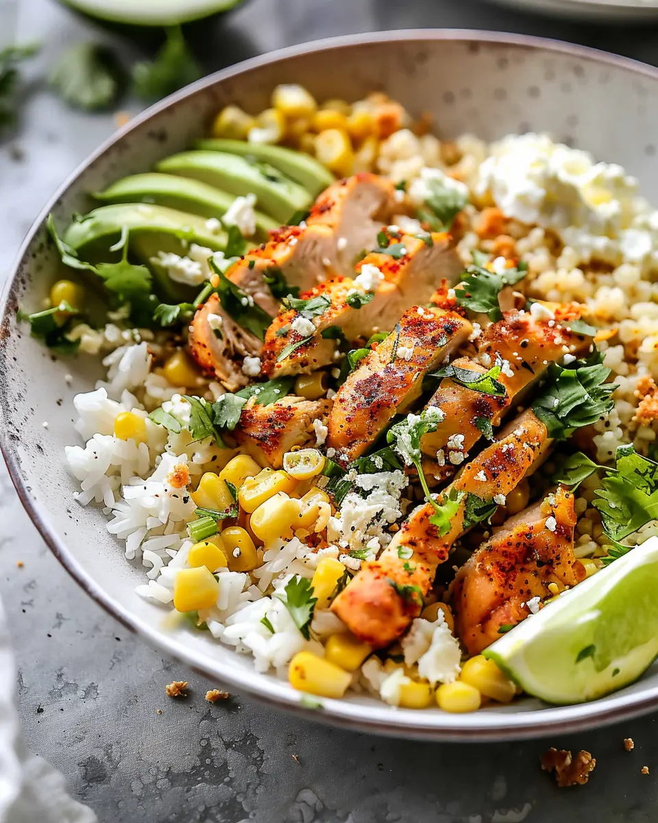 Adjust these according to your preferences, and you’ll have a tasty street corn chicken bowl that’s bursting with zing!