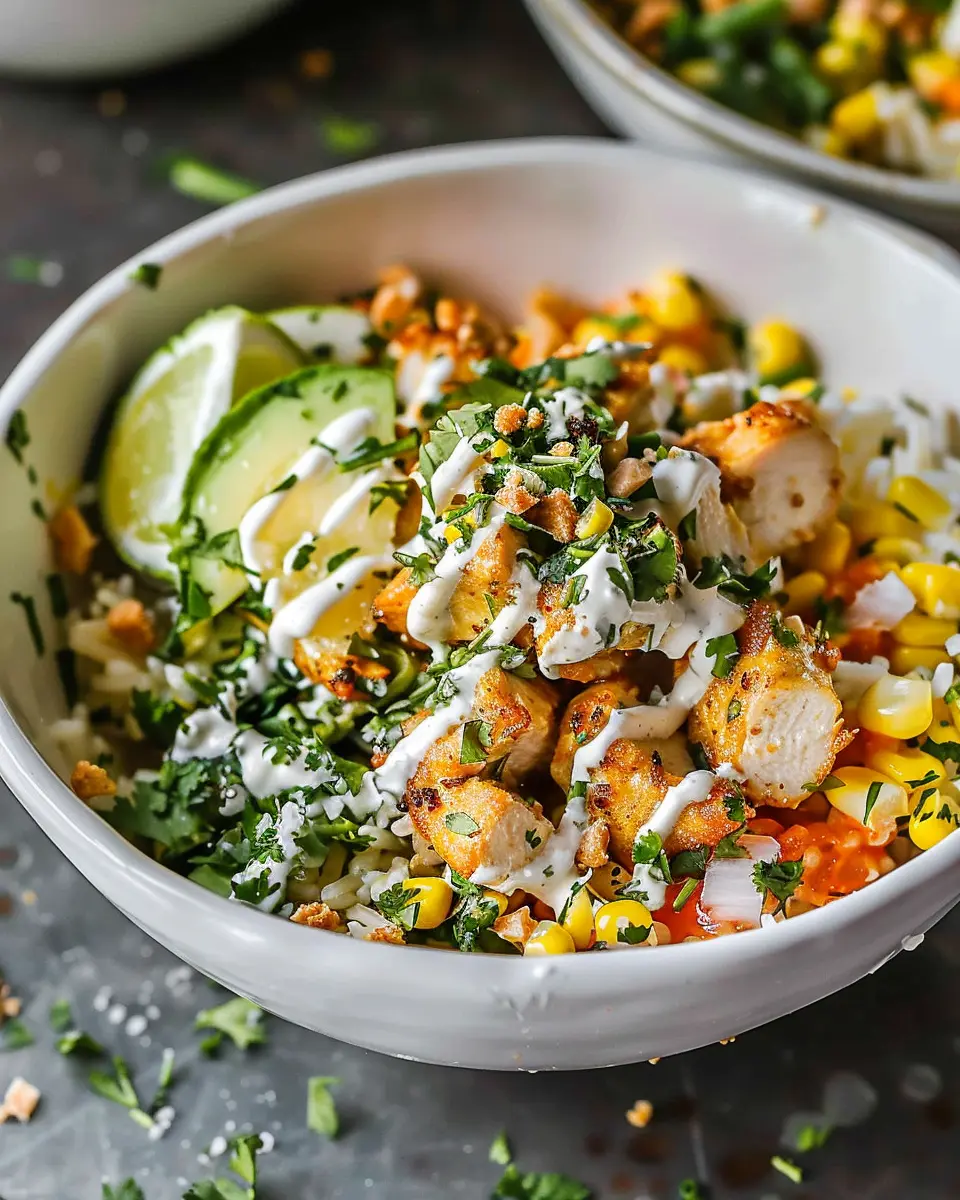 For a fun twist, you can also add some chopped green onions or a sprinkle of chili flakes for added texture and taste. Drizzle any remaining creamy sauce over the top, and your Tasty Street Corn Chicken Bowl is ready to devour!