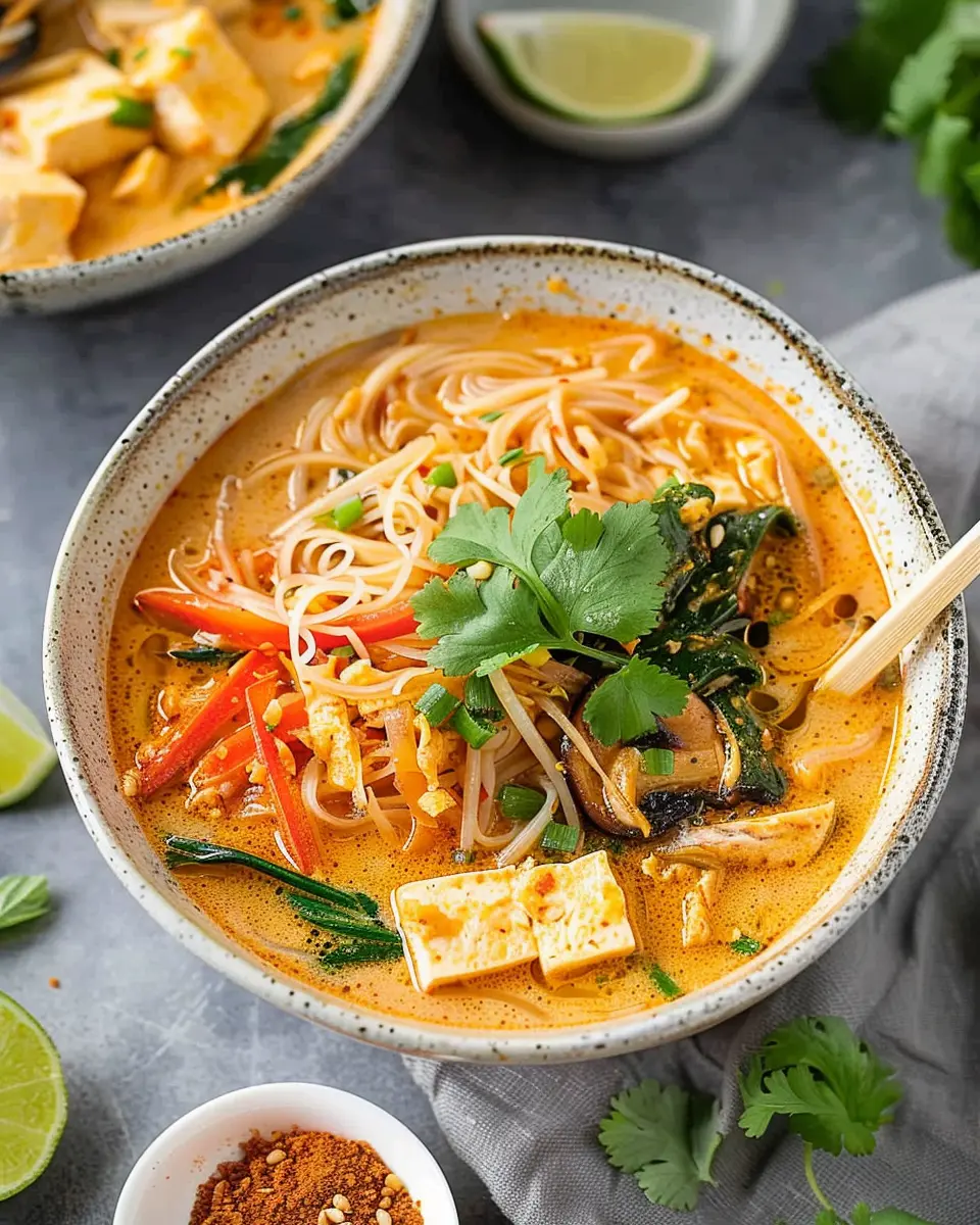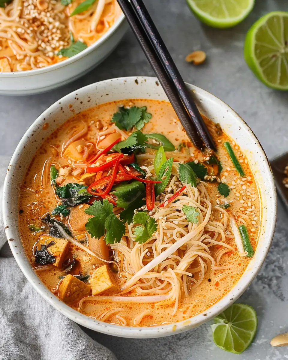 Enjoy a comforting bowl of Thai red curry noodle soup that’s easy to make and perfect for any occasion.