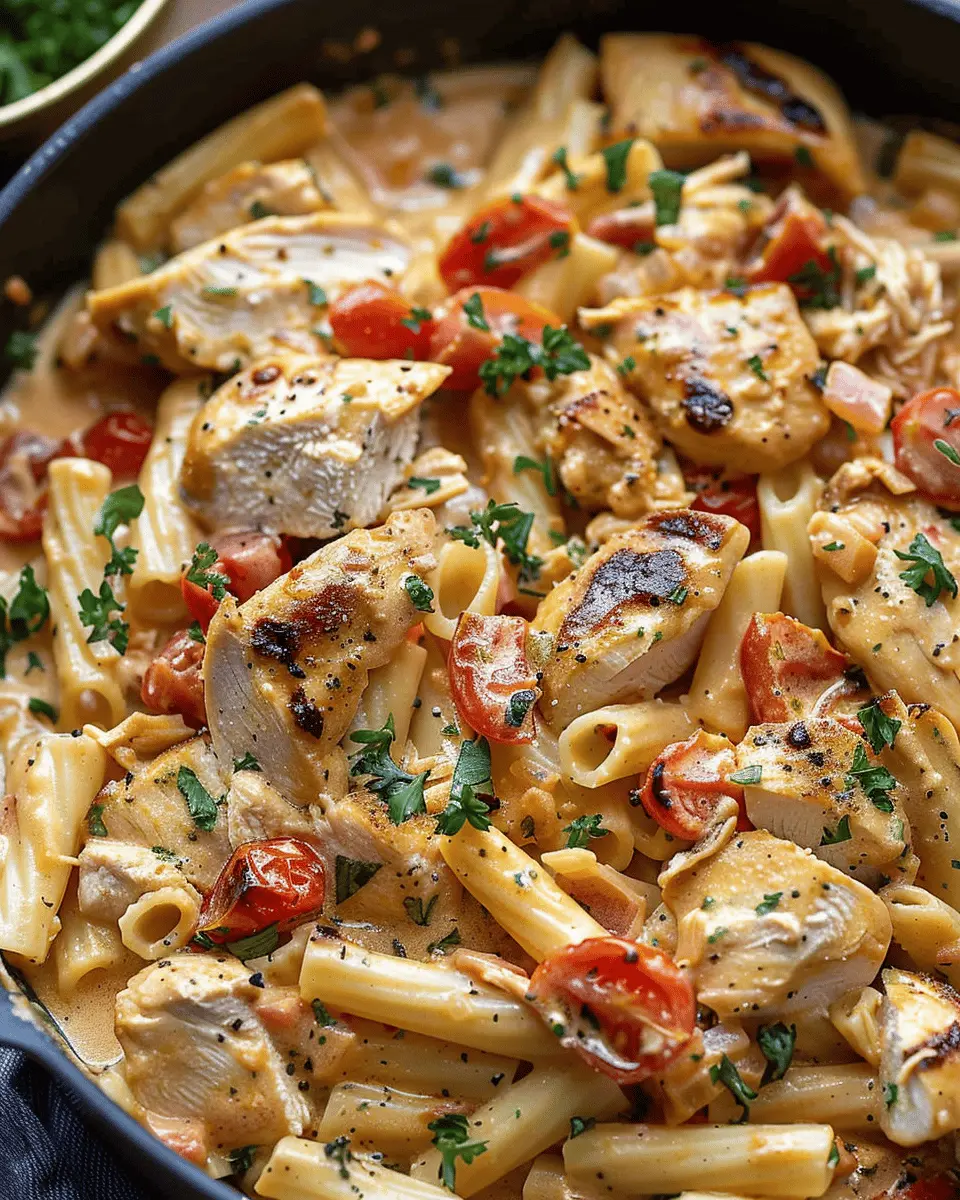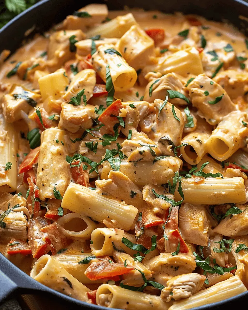 Once your sauce has simmered, it’s time to bring everything together. Remove the chicken from the oven and chop it into bite-sized pieces. Add the cooked rigatoni back into the skillet along with the chopped chicken. If your sauce seems a bit thick, this is where you can add a splash of that reserved pasta water—mix until you reach your desired consistency.