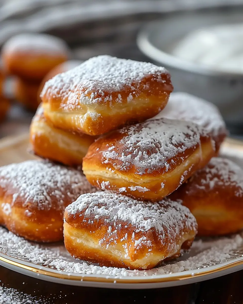 - While still warm, dust your beautiful vanilla French beignets generously with powdered sugar. The snow-like appearance is what makes them so inviting! Serve them warm with your favorite dipping sauce, and watch as your friends and family dive in for a taste.