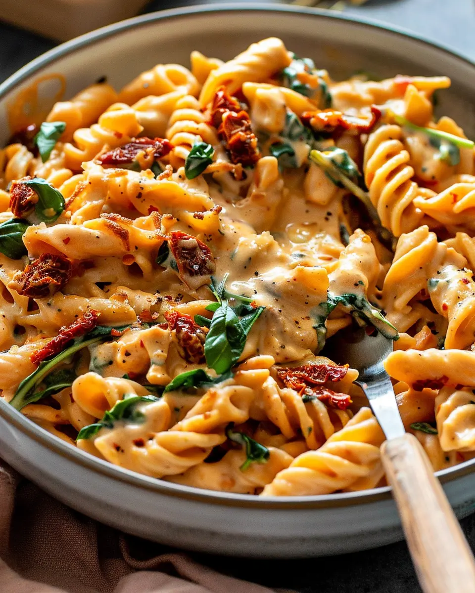 A creamy and flavorful vegan pasta dish featuring sun dried tomatoes, perfect for a quick weeknight meal.