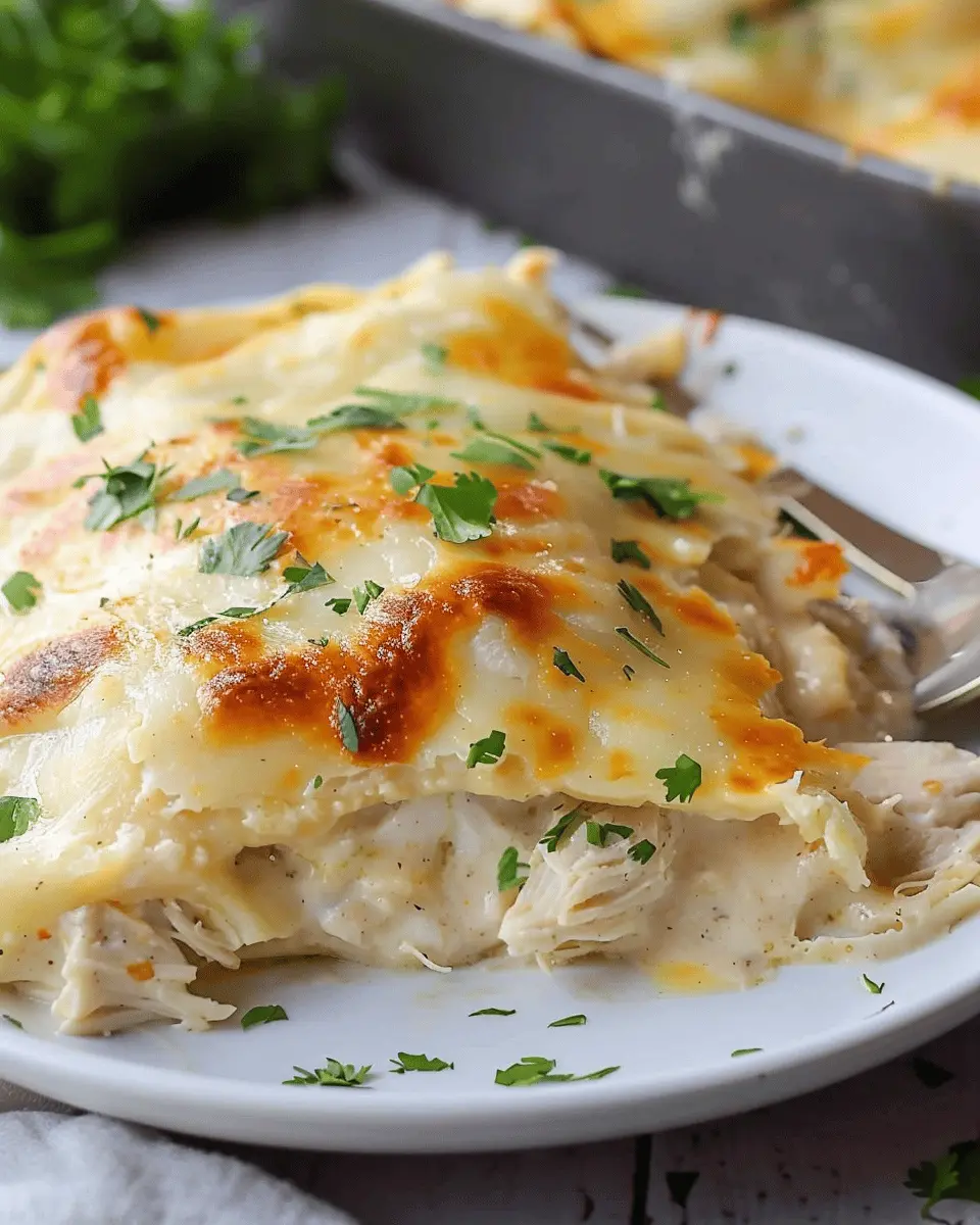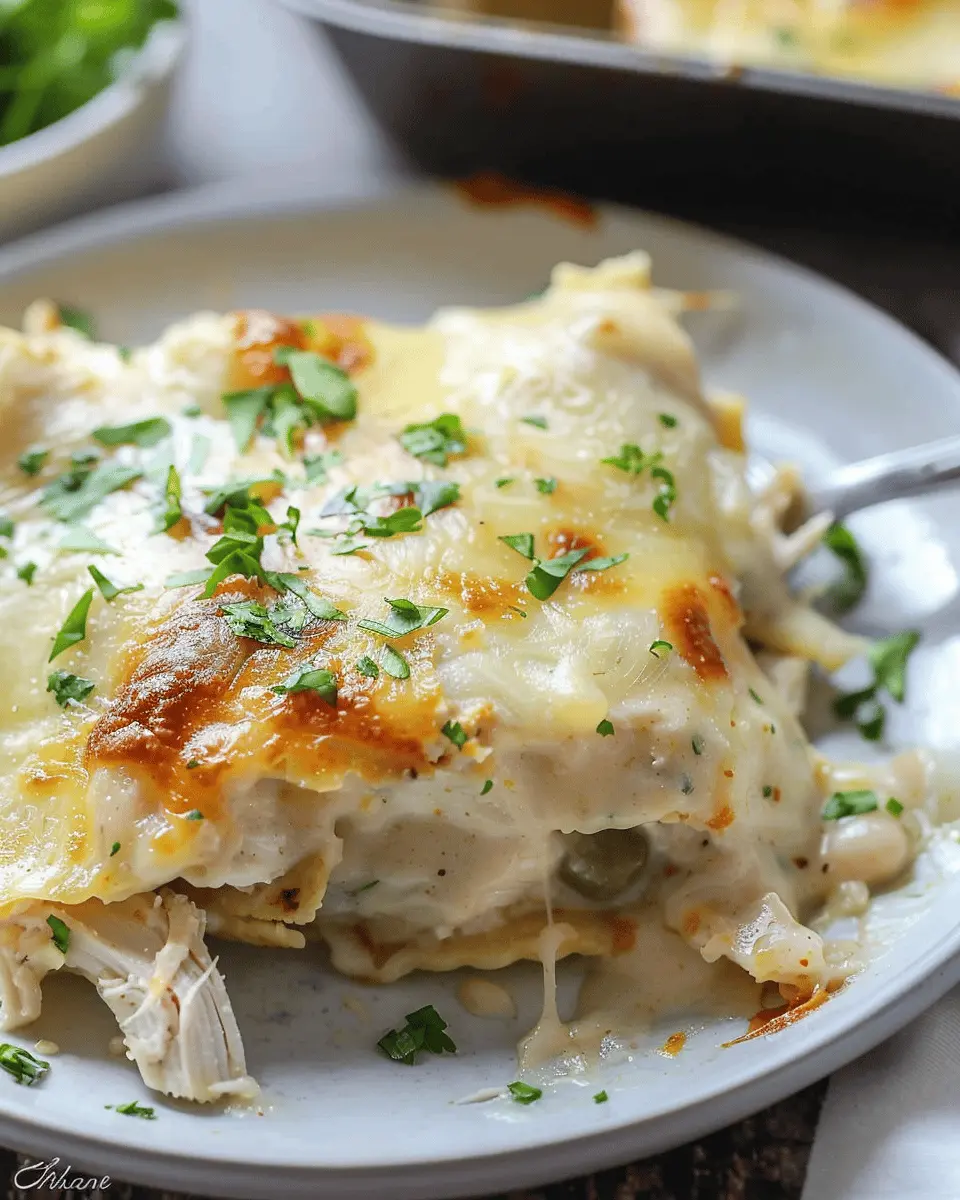 PrintWhite Chicken Enchilada Casserole: Easy Comfort Food for All